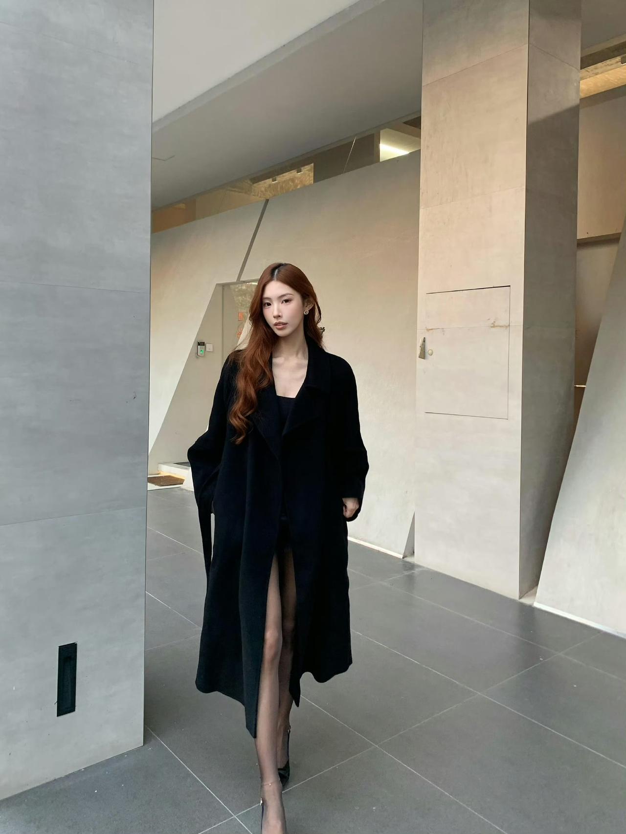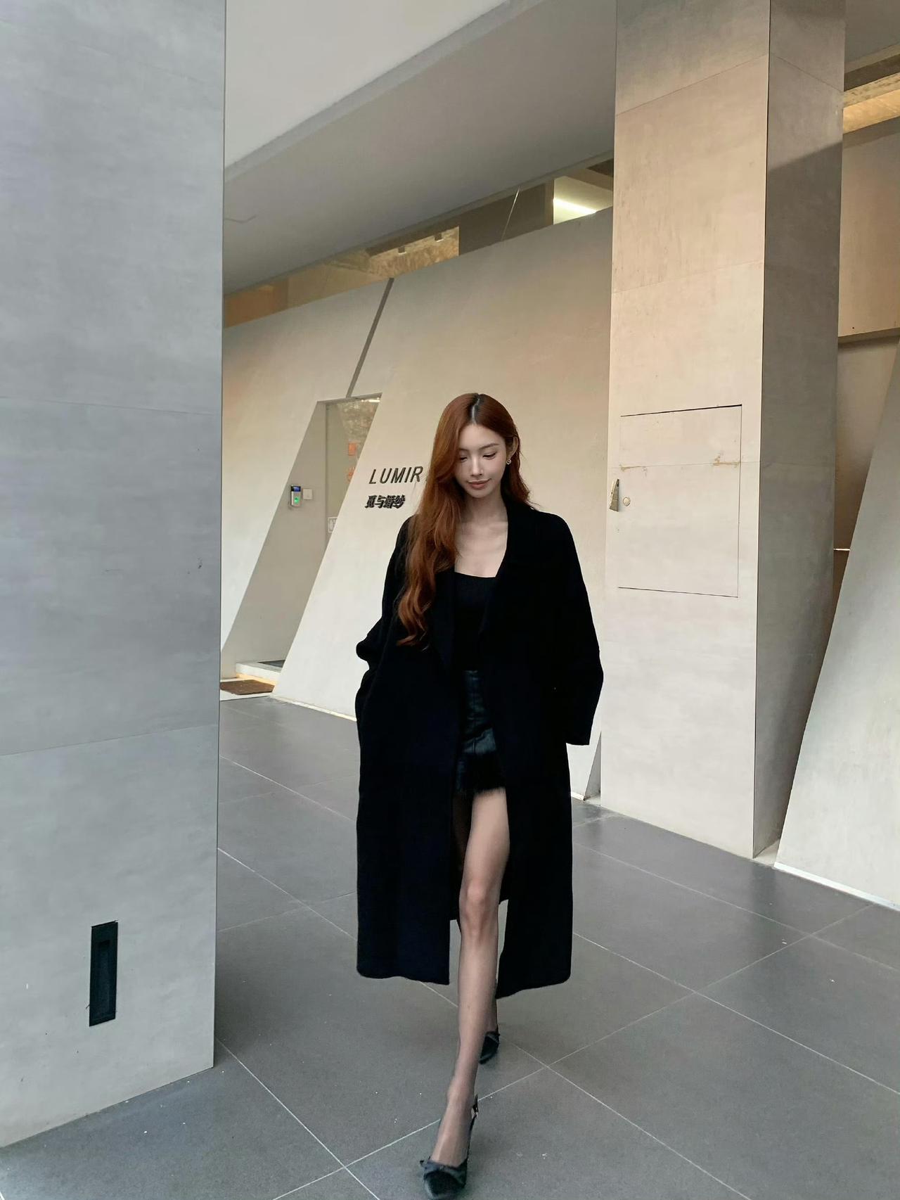 这套穿搭太有“冷艳贵气感”了!黑色长款大衣自带气场,皮裙的毛绒边添了精致细节,搭配尖头鞋又显轻熟利落,全黑调里藏着低调的高级感。黑色大衣应该怎么搭配 成熟风大衣搭配