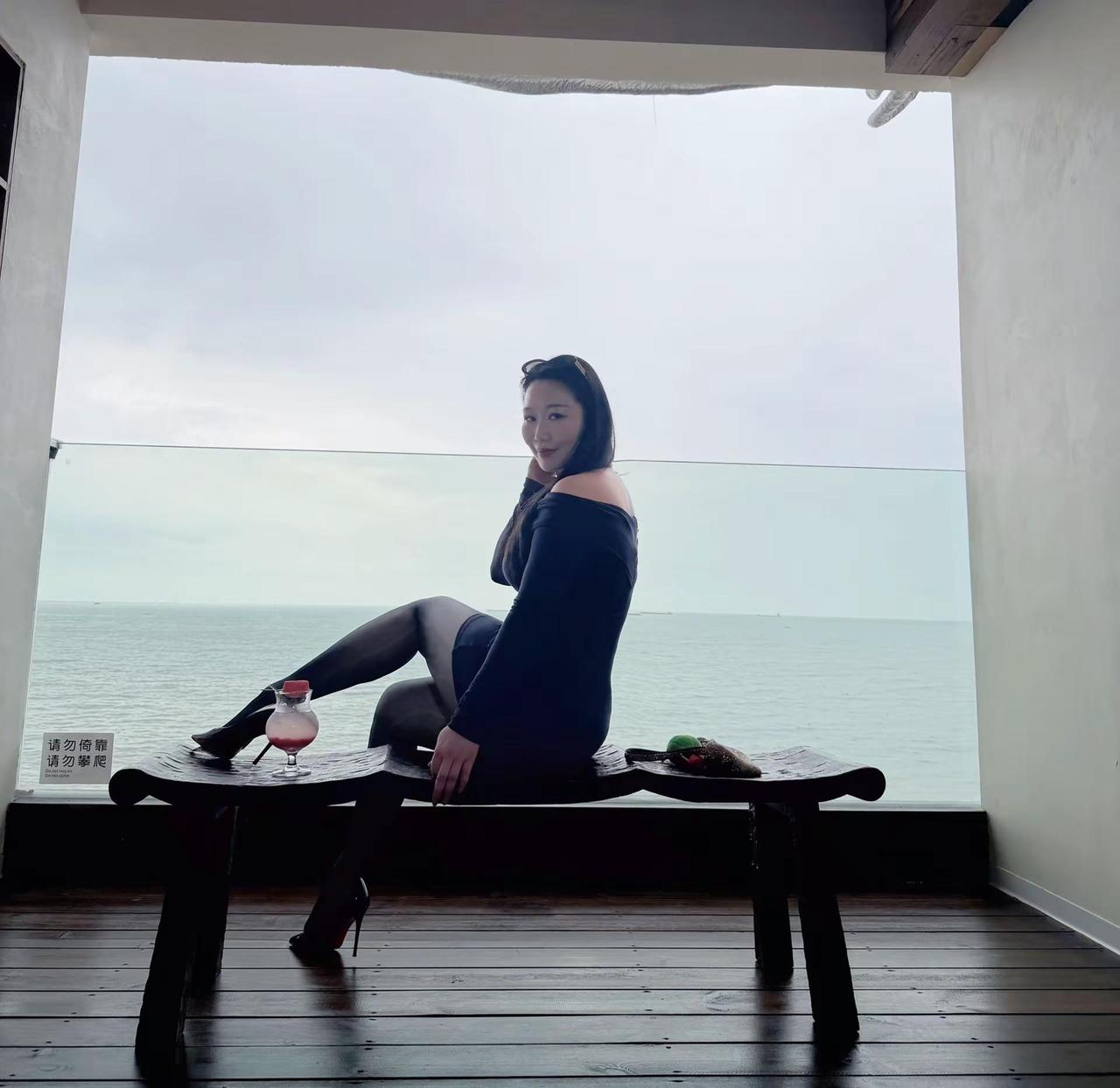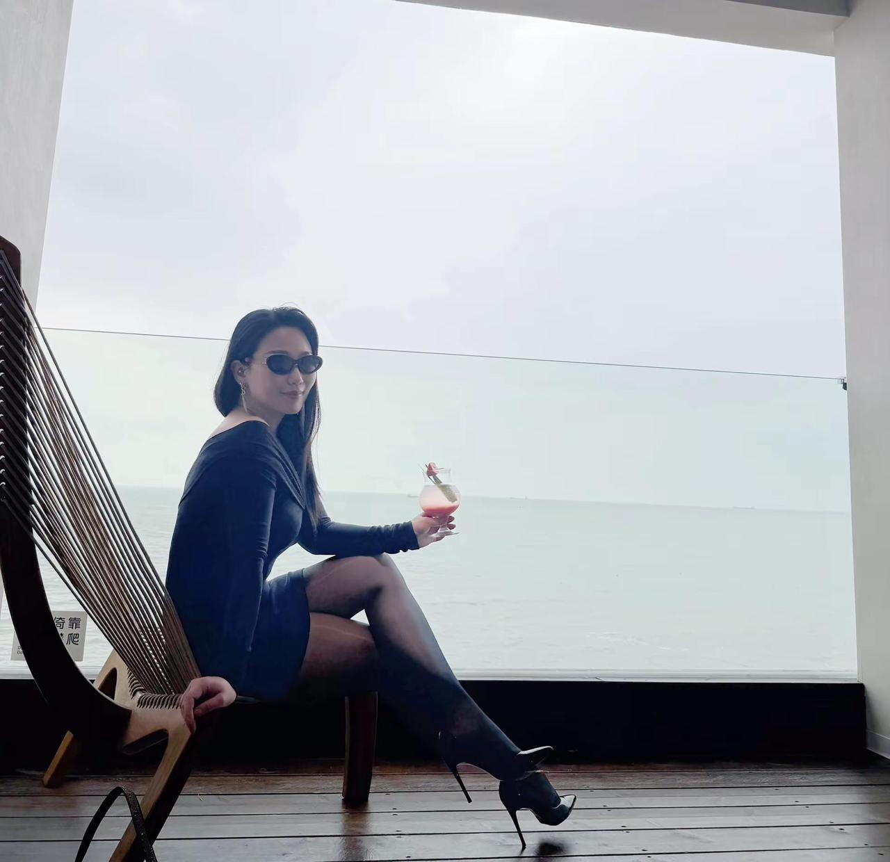 黑纱美人倚栏坐,情意绵绵思悠长高雅气质美女