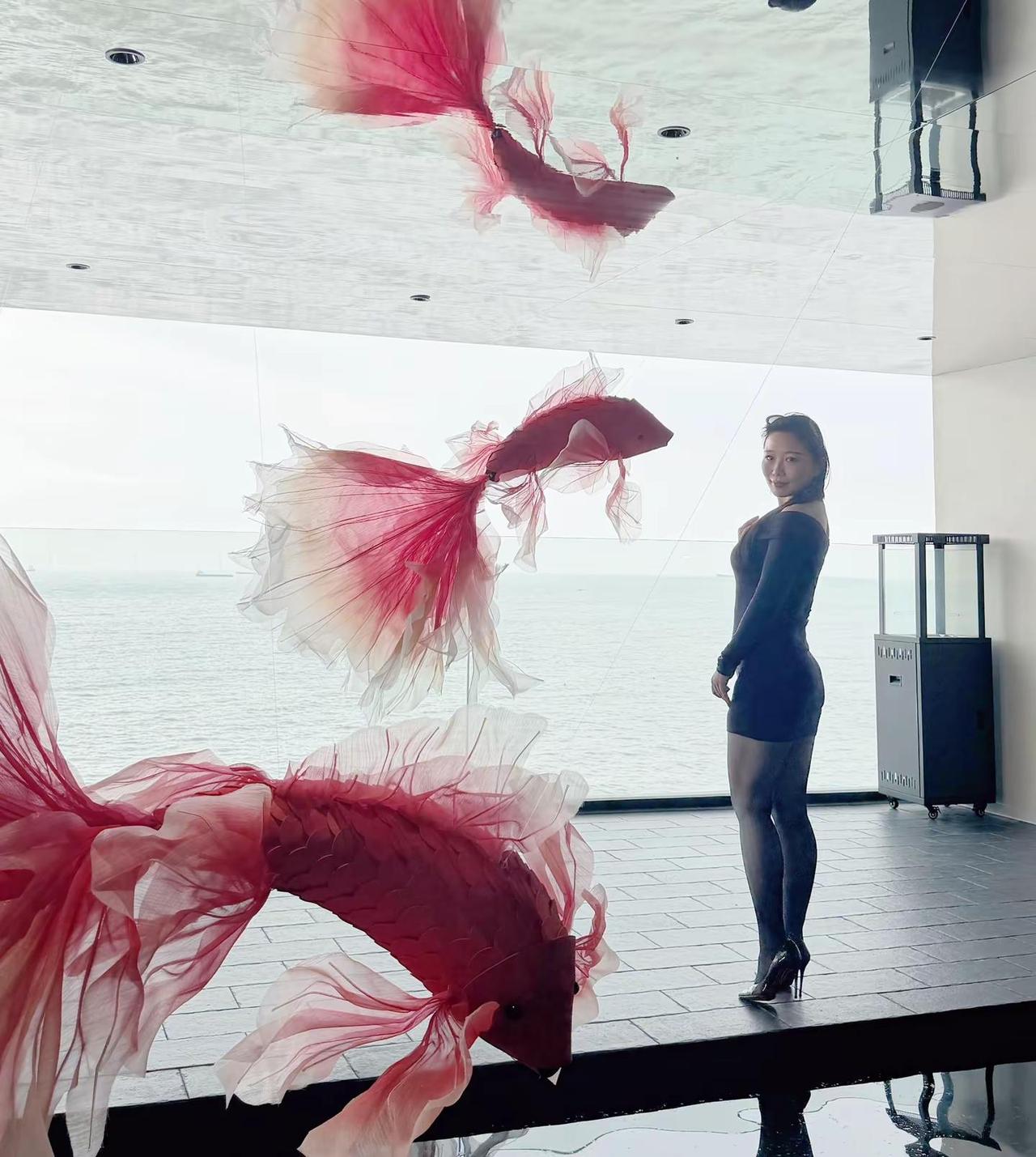 这个小姐姐穿着透视长袖衫,好有范儿!穿搭