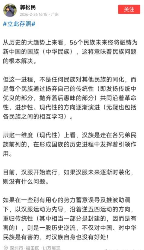 极左分子郭松民、孔庆东等喜欢煽动群众斗群众,不要上他们的当!此次郭等把汉服贬低为落后农耕文明的产物,又鼓吹清朝如何好,严重刺伤了大家的民族感情,彼等否定辛亥革命推翻满清帝制的革命成果,暴露了极左分子的反革命本质,因此犯了众怒! 郭松民此前曾公开称汉服是落后农耕文明的产物,不值得追捧,他的言论在网络平台传播后,迅速引发汉服爱好者的反对,不少人拿出日常穿汉服参与文化活动的照片,反驳这种单一标签化的说法。 孔庆东同期在公开场合多次鼓吹清朝的治理,认为其制度有诸多可取之处,这种言论与当下大众对清朝历史的认知产生冲突,网友们纷纷留言,指出清朝晚期的闭关锁国与落后挨打,并非值得过度推崇的时代。 两人的言论叠加,直接刺痛了大众的民族感情,汉服是中华优秀传统文化的载体,这是官方明确的定位,共青团中央发起“中国华服日”,各地持续举办汉服文化节,这些活动都在印证汉服的文化价值。把汉服贴上落后的标签,显然与官方倡导的文化传承方向相悖。 辛亥革命推翻清王朝,结束了延续几千年的君主专制制度,这是历史定论,光明网等官方媒体明确指出,辛亥革命为中国的政治现代化开创了新阶段,民主共和的观念因此深入人心,鼓吹清朝优越,本质上是对辛亥革命革命成果的否定。 郭松民、孔庆东的操作,是典型的煽动群众斗群众,他们用极端化的观点制造分歧,挑动不同群体的对立情绪,说白了就是用争议话题博关注,让网友陷入无意义的争吵,而忽略了文化传承与历史认知的核心。 网友们的眼睛是雪亮的,相关言论发布后,全网出现大量理性声音,大家自发转发官方的文化传承报道,普及辛亥革命的历史意义,抵制这种错误言论,不少自媒体博主也发布内容,澄清汉服的文化价值与清朝的历史定位,形成了强大的正面舆论。 这种犯众怒的结果,是必然的,中华优秀传统文化的传承,需要客观理性的态度,历史的定论,更容不得随意歪曲,官方媒体多次强调,要坚定文化自信,树立正确的历史观,任何试图挑战这两点的言论,都必然会遭到大众的反对。 网络不是法外之地,更不是煽动对立的舞台,我们要保持清醒,不被极端观点带偏。多看官方发布的权威信息,多了解真实的历史与文化,就不会轻易落入别人的节奏陷阱。 以上部分内容是小编个人看法,如果您也认同,麻烦点赞支持!有更好的见解也欢迎在评论区留言,方便大家一同探讨。