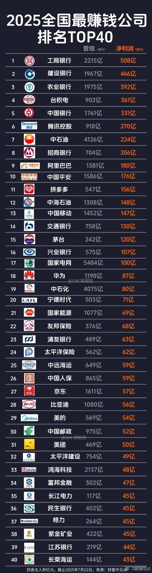 全国最赚钱的40家企业!能进去的都是牛人吧。