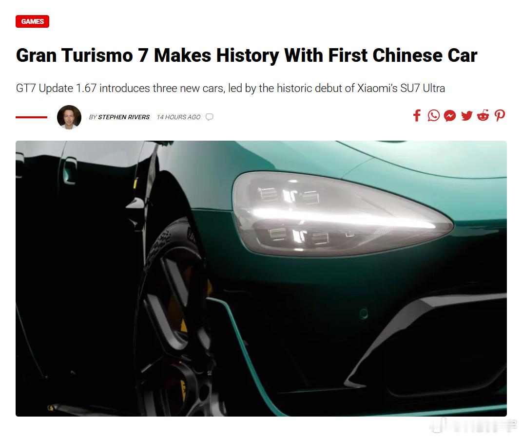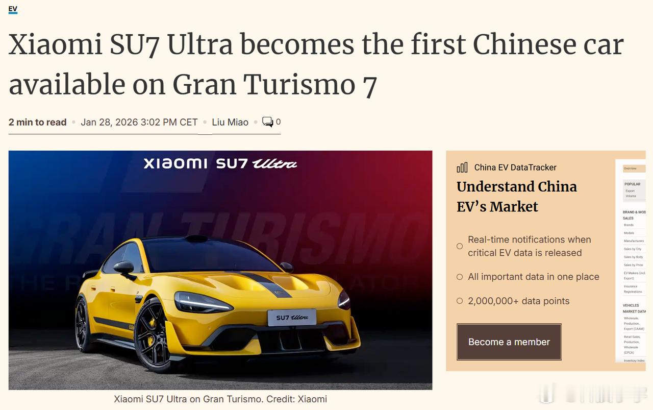 小米SU7 Ultra登陆《GT赛车7》,这不是一次普通的游戏更新,而是中国汽车工业的高光时刻——首款中国车入驻全球神级赛车游戏,首次在GT赛场飘扬。