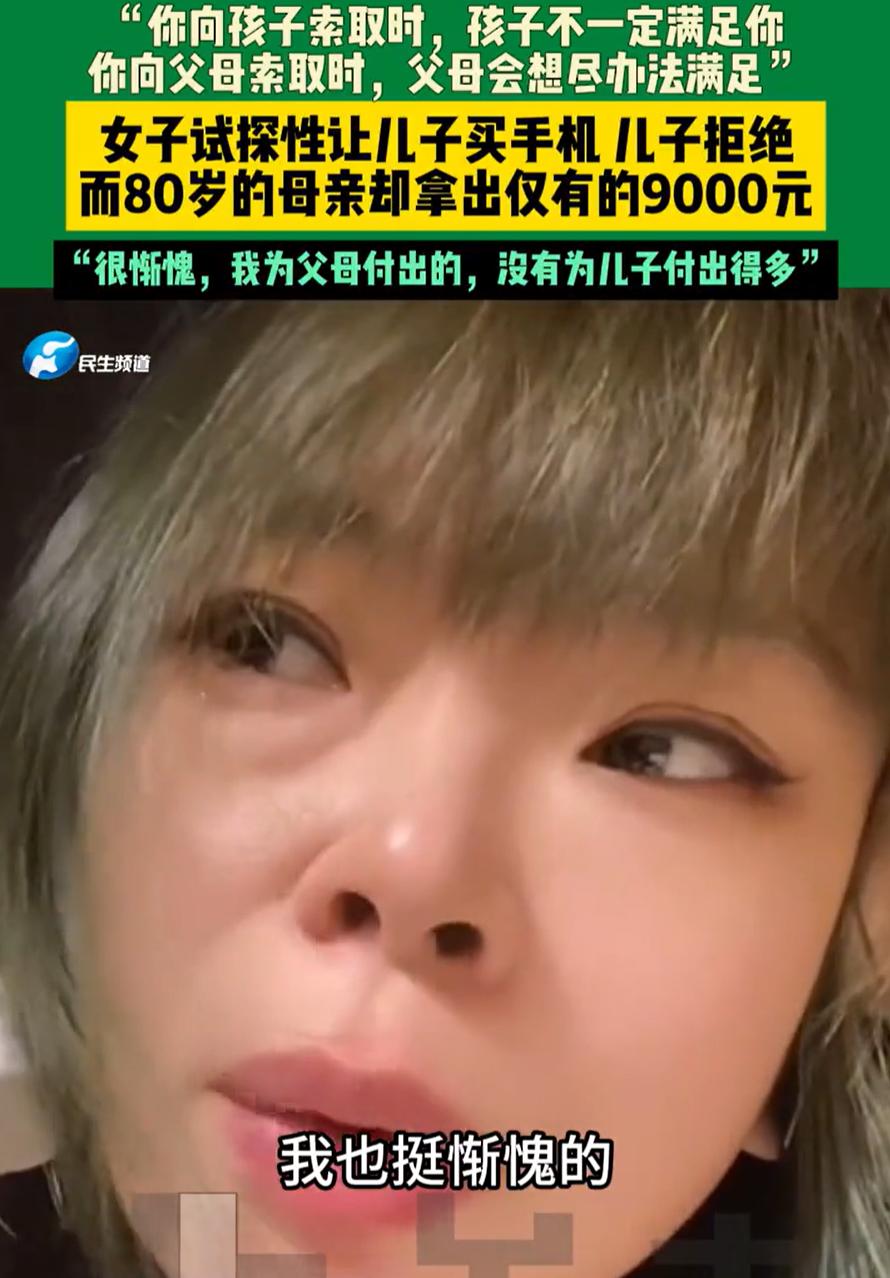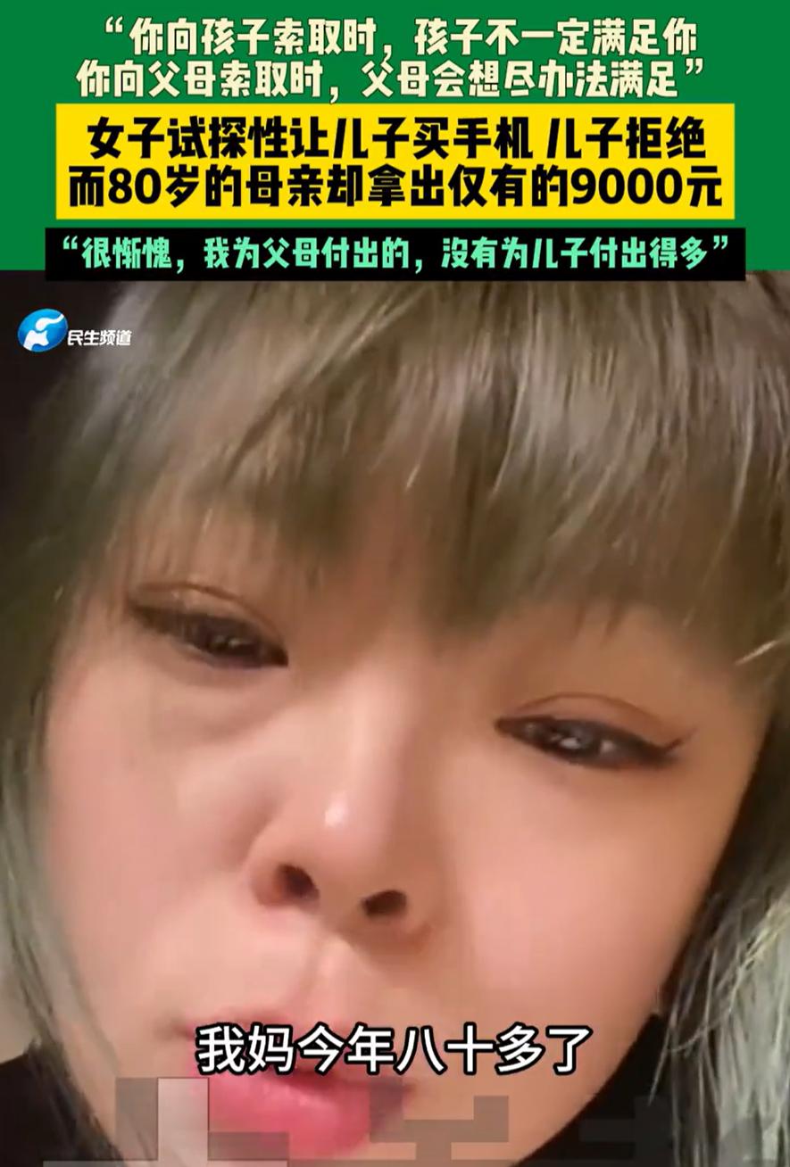 吉林,女子的儿子给她转了18000元,女子突然想试探一下儿子,能不能用这个钱给她换个手机,可结果却令她失望了,而等她回到80多岁母亲那里,母亲甚至都没问理由就去给她拿钱,女子瞬间觉得惭愧,因为自己对父母付出的远不如给孩子的 当天,女子看着手机上的转账提示,突然起了个念头,想试探一下儿子。她跟儿子说,自己现在用的手机还是他之前淘汰下来的苹果11,要不咱就拿这钱换个苹果17吧 让她没想到的是,儿子一听这话,脑袋摇得跟拨浪鼓似的,当场就拒绝了。儿子说这是他好不容易攒的钱,总之就是不同意 第二天,女子又来到80岁母亲那里,她让母亲拿出一万元给自己换个手机,母亲嘴上说着没那么多,转身却拿出9000块钱 这一瞬间,让女子感慨万千,她把这个事发到网上,表示向孩子索取时,孩子不一定会满足你的愿望,但向父母索取时,他们却不会问你任何理由 有网友说:爱是向下倾斜的,父母对子女的爱永远多于子女对父母的爱,这是没办法的事 其实仔细想想,这位女子的经历戳中了很多家庭的现实。我们总是习惯性地把最好的给孩子,却很少想过父母为我们付出了多少。孩子拒绝我们的要求时我们会失落,可我们拒绝父母的时候呢? 父母那一代人,他们对爱的表达方式很朴素,就是你需要什么,只要我有,我就给你。他们不会去衡量这钱是攒了多久,也不会问你为什么要花这个钱。在他们心里,子女的需求就是最重要的 而我们这一代人对孩子,何尝不是这样?只是当我们站在子女的位置时,感受就完全不同了 我们爱孩子往往胜过爱父母,这是人性使然,也是代际传递的规律。但偶尔也需要抬头看看,那些站在我们身后,一直默默付出的老父母