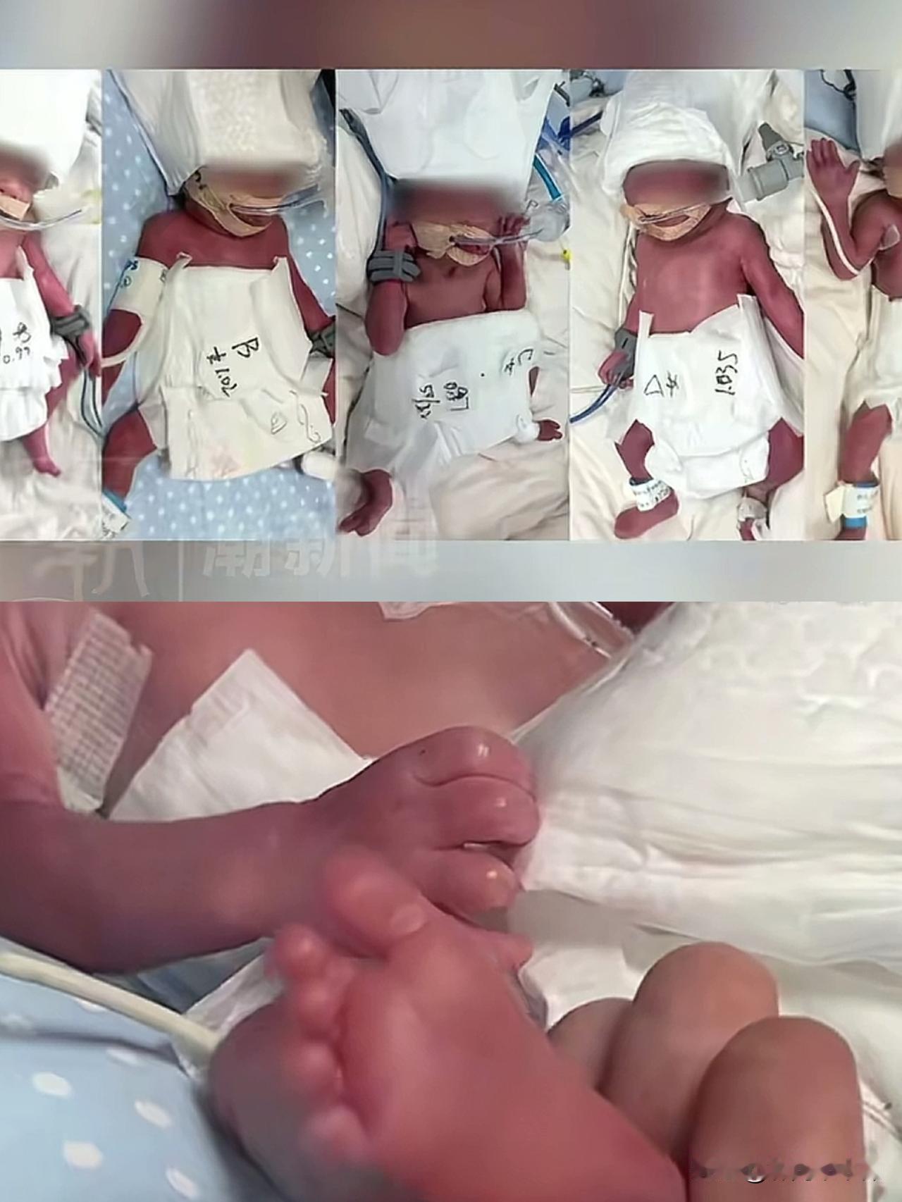 看着普普通通的两个人,竟然一胎生出5个孩子来,一男四女!现在国家正鼓励生育,一次性做这么大的贡献,政府不得奖励啊! 怀孕生育确实费妈,才24岁看着有些憔悴了。我表姐怀双胞胎,孕36周就坚持不下去了,挑个日子就去剖了,怀5胞胎的艰辛,更是难以想象! 这还只是开始,未来三年内,全家都别想睡个囫囵觉了。爷爷奶奶,外公外婆全得上阵!一次付出5倍的辛苦,也收获了5倍的幸福,值得!