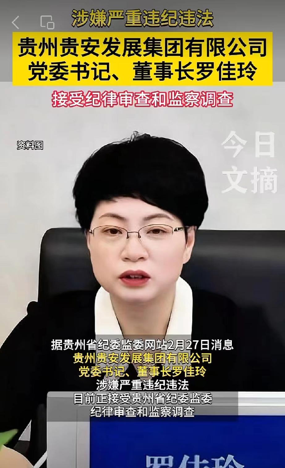 年还没有过完,贵州贵安发展集团有限公司的“美女”董事长罗佳玲,算是走向了仕途的终点,再也吃不上正月十五的热元宵了。 这个罗佳玲不简单,她是1971年8月生人,布依族,拥有大学学历,工程学硕士。不光学历高,而且还是一名高级政工师,高级经济师。 她曾经在贵阳市工作多年,早年期间担任过贵阳市金融办主任,此后又担任过贵阳银行党委副书记、行长。 之后还担任过贵阳农村商业银行监事长。 2022年7月,被推荐为贵安新区开发投资有限公司董事、董事长、总经理人选。 2022年10月,贵安新区开发投资有限公司更名为贵州贵安发展集团有限公司。 2023年1月,52岁的罗佳玲,被任命为贵州贵安发展集团有限公司董事,董事长,总经理。在这一核心岗位上,工作时间不短。一直到此番落马。 这里的贵州贵安发展集团有限公司,是贵州省人民政府于2012年10月,批准组建的省属国有大型企业,现为贵安新区管委会直属的国有控股公司。该公司注册资本达203亿元人民币,也是推动贵安新区产城融合发展的核心平台。 该公司作为贵安新区产城融合的综合服务商和贵阳贵安数字经济发展的主力军,公司主要承担着基础设施建设、城市综合运营,产业投资和资本运作等核心职能。 纵观罗佳玲的履历,在贵阳市的金融系统深耕30余年,从大型银行行长,再到省属国企一把手,没想到却因为自己的贪婪之心,彻底葬送了大好前程,本就已经享受着高昂的薪资待遇,却偏偏欲壑难填。如今随着官宣落马消息的发布,也预示着他的好日子将彻底终结于今日,未来等待他的将是法律的审判和后半辈子的牢狱生活。