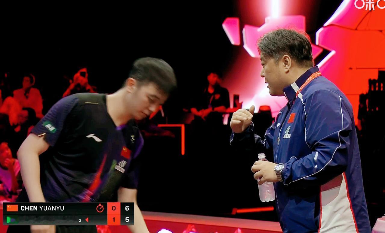 我去,孙逊指导陈垣宇的话,被全球直播了! 哎,我们国乒的指导秘密不复存在。 孙逊说了很多, 程靖淇解释说: 让陈垣宇打那几个点,打透他。 第一局 陈垣宇6:11输了 第二局 陈垣宇连续中路突破, 6;3领先, 但是一个机会球 拉丢了, 雨果追到了5:6 陈垣宇叫了暂停, 回来后陈垣宇9:6领先。 雨果追到了9:9。 陈垣宇11;9拿下。 程靖淇说:孙逊的战术非常对。