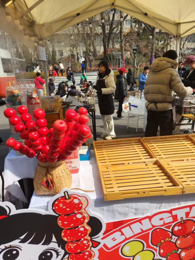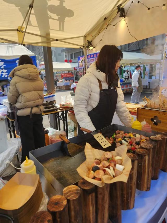 青岛海云庵糖球会分为三大片:海云庵片、四方公园片和四方片三个片举行。 微头条 现在四方公园片已搭建完毕,许多店铺已营业。其它两片还在筹画中。 在四方公园片,据今日观察,“青岛新疆兄弟烧烤王”店铺最吸引人,他们准备了大量的整猪肉、整鲜羊🐏肉,在做着人们最爱吃的各种炸肉串。旁边还有春姑娘跳舞🕺🕺,不断吸引着人们的眼球。 其次是“武汉热干面”也最吸引人。很多年有人都乐意选择。她们先把饭盒中的面条准备好,下入开水沸腾的锅里,稍等片刻,把面条捞出后,再根据自己的口吻加入调料。一碗“武汉热干面”就做好了,吸引了不少年青人前来就餐。 友友们你们对糖球会的希望是什么呢?来评论区评论一下吧!