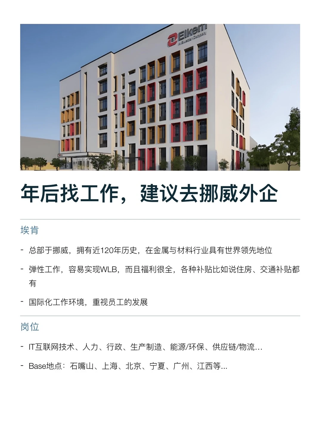 四点半下班的挪威外企,年后有想来的吗