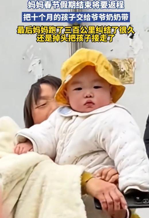 可怜天下父母心!江苏,女子返程前把10个月的孩子留给了老家的爷爷奶奶,可车子开走了300公里,女子始终放不下心,最终还是选择掉头接回孩子,再苦再累还是决定自己带。网友:这是对的! 返程的每一辆车里,都装着不舍与牵挂,尤其是那些家里有小宝宝的家庭。 宝妈和大多数外出打拼的年轻人一样,趁着春节假期,带着宝宝回到老家,和公婆团聚。 公婆身子骨还算硬朗,有大把的时间照看孩子,不用像在城里那样,一边上班一边还要操心孩子的事。 城里的托育费用不低,找个靠谱的也难,不如让孩子在老家安安稳稳长大,等条件好一点再接过去。 做决定的那几天,宝妈几乎没睡好,夜里常常醒过来,看着身边熟睡的宝宝,一遍遍地在心里纠结。 她知道,把孩子留下,是理智的选择,可心底的不舍,却像潮水一样,一次次涌上来。 10个月的宝宝,正是黏人的时候,已经能清晰地认出爸爸妈妈,只要看不到他们,就会委屈地哭闹。 告别那天,天气有些微凉,宝妈亲手把宝宝交到婆婆怀里,宝宝似乎察觉到了什么,小手紧紧抓着她的衣角,小脑袋靠在她的肩膀上,咿咿呀呀地哼着,眼神里满是依赖。 她匆匆转身,拉着丈夫上了车,关上车门的那一刻,眼泪终于忍不住掉了下来。 离家越远,宝妈的情绪越来越低落,手里的手机握得紧紧的,屏幕上一直停留在宝宝的照片页面。 她想起平时在家里,宝宝每天早上醒来,都会先爬到她身边,用小脑袋蹭她的脸,嘴里发出咿咿呀呀的声音。 当车子开出整整300公里,距离下一个高速出口还有不远的距离时,宝妈再也绷不住了,她肩膀不停地颤抖,眼泪像断了线的珠子一样往下掉。 丈夫太懂妻子的心情了,这段路上,他看着妻子坐立难安的样子,看着她一遍遍翻看宝宝的视频,心里也不好受。 但他更清楚,妻子心里的牵挂,不解决掉,就算到了城里,也无法安心工作。 返程的路上,宝妈的心情反而平静了许多,脸上的泪水渐渐止住,眼神里多了几分坚定。 车子一路疾驰,再次回到老家小院门口的时候,宝妈推开车门,就迫不及待地飞奔了过去。 婆婆正抱着宝宝在院子里晒太阳,宝宝看到她,眼睛一下子亮了起来,伸出小手,嘴里发出欢快的咿呀声,挣扎着要扑到她怀里。 宝妈一把接过宝宝,紧紧地搂在怀里,感受着孩子温热的小身体。 有网友感慨,车头的方向是生活,车尾的方向是牵挂,对于父母来说,孩子在的地方,才是真正的家。 那些错过的成长瞬间,那些缺席的温暖拥抱,就算以后挣再多的钱,也无法弥补。 宝妈不是不懂得权衡利弊,也不是不怕辛苦,只是在母爱面前,所有的理智和算计,都变得不堪一击。 往后的日子,她或许会每天忙得脚不沾地,会因为照顾孩子而疲惫不堪,会面临更多的生活压力,但她一定不会后悔。 可怜天下父母心,从来都不是一句空洞的话,而是藏在每一次牵挂里,每一次抉择里,每一份默默的付出里。 对于这件事,您有什么想说的吗?欢迎评论区留言讨论。
