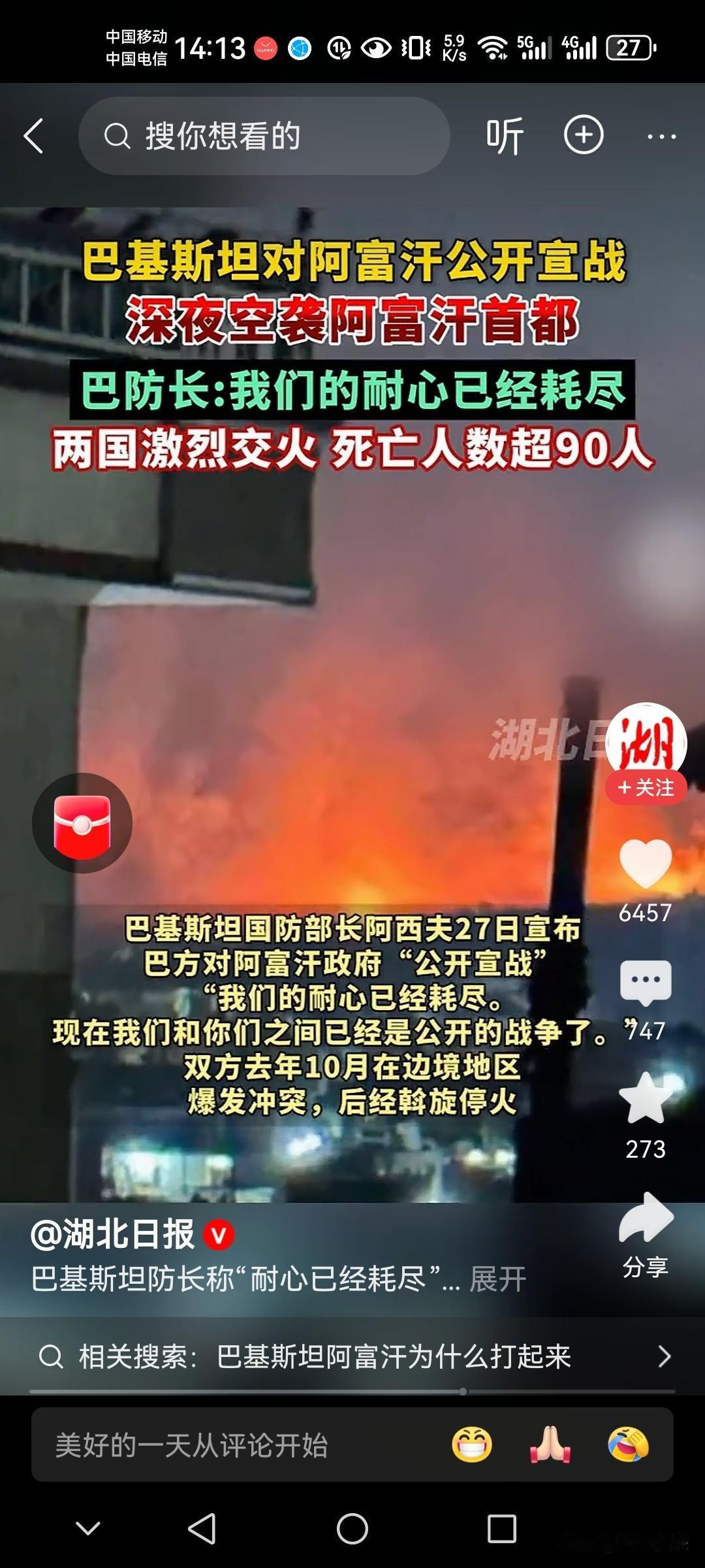 巴基斯坦不得了 今非昔比了! 直接跟阿富汗“公开宣战”真是够强硬! 巴基斯坦国防部长阿西夫称:我们的耐心已经耗尽! 巴基斯坦和阿富汗边境地区发生激烈交火,现场火光冲天! 巴基斯坦引以为傲的空军出动战机直接空袭阿富汗首都喀布尔及坎大哈等地区,现场发生多处爆炸,目前冲突仍在激烈进行中! 双方都互相指责对方先开火,都宣称打死对方几十名士兵!双方死亡人数超过90多名! 目前冲突暂时不会停下来,就看谁更强硬一些! 说句心里话,巴基斯坦的实力更胜一筹!阿富汗军事冲突 巴基斯坦交火 巴基斯坦战乱