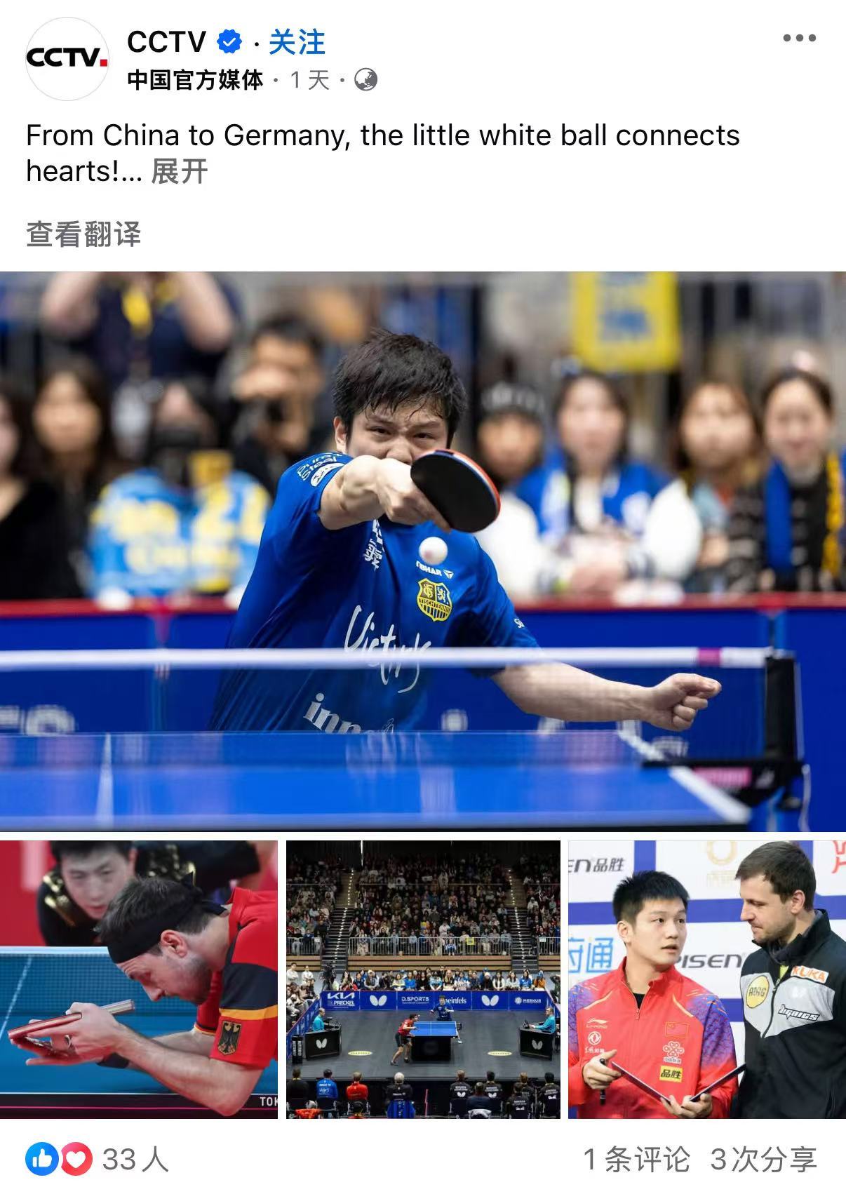 小白球连着中德人民的心 🏓CCTV报道樊振东波尔的友情 谁能想到 当初山穷水路时的一个选择 如今却迎来柳暗花明的一天 !伟大!