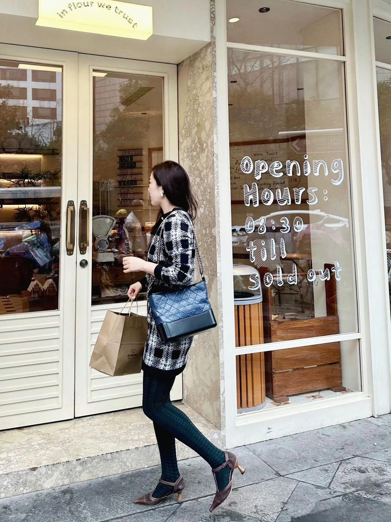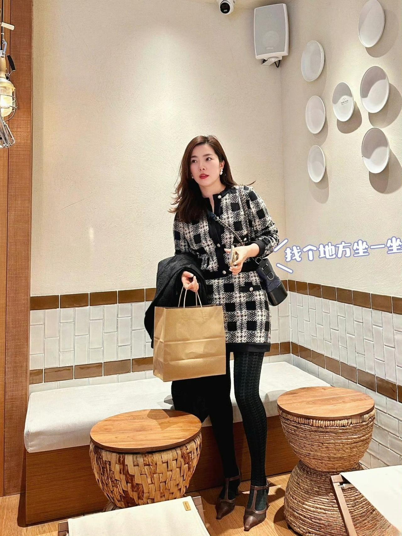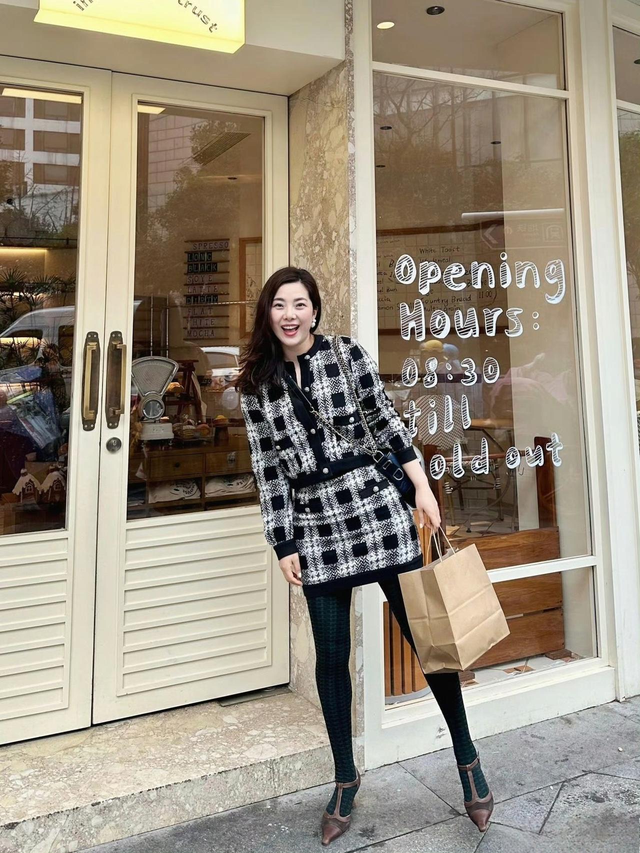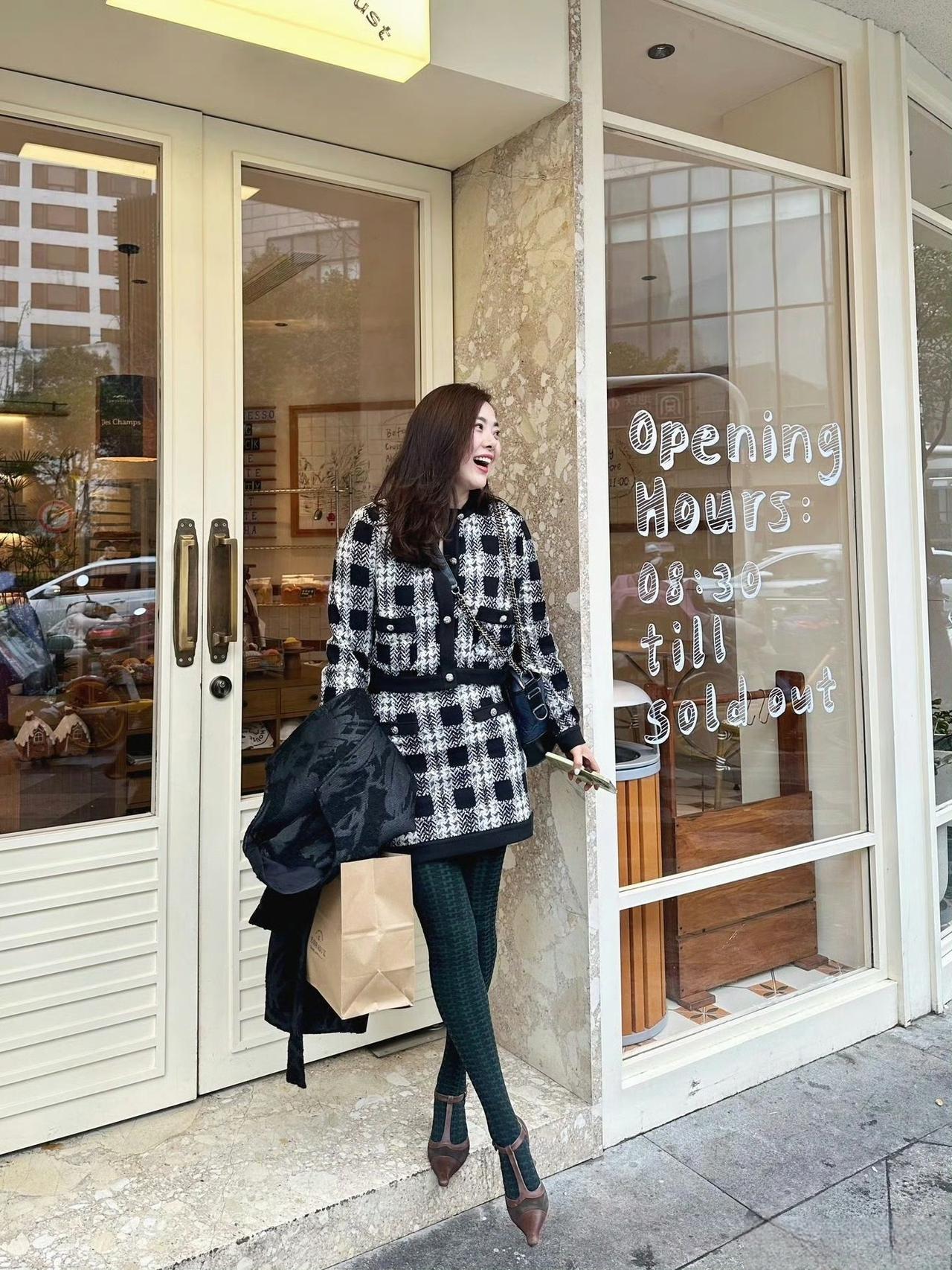 这套穿搭太有“优雅复古感”了!黑白格纹套装自带精致贵气,墨绿花纹袜子添了复古细节,搭配棕调高跟鞋刚好平衡了甜腻感,是舒服又耐看的轻熟风。黑白格纹穿搭 时尚格纹穿搭