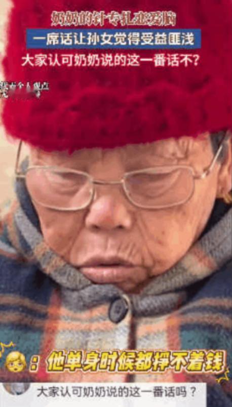 “这个奶奶火了!”江苏,一女子过年回家陪奶奶聊天,随口问了句“穷但是人品好的人能嫁吗”,本以为奶奶会回答“人品最重要”,可奶奶的一番话,直接让她的“恋爱脑”当场清醒!网友:这奶奶专扎恋爱脑! 江苏女子一时兴起,就把自己的困惑说了出来,随口问了奶奶那个困扰自己很久的问题。她心里早已预设好了答案,觉得经历过一辈子风雨的奶奶,一定会告诉她,人品比金钱重要,劝她珍惜那个对自己好的人。 可让她万万没想到的是,奶奶听完她的问题后,没有丝毫犹豫,也没有说那些空洞的大道理,只是慢悠悠地开口。 奶奶没有否定人品的重要性,却也没有回避现实的残酷,语气平淡却字字恳切,让女子瞬间愣住,心里的纠结和迷茫,仿佛被一语点破。 女子后来把和奶奶的聊天片段,悄悄分享到了网上,没有刻意炒作,却意外走红,奶奶的一番话,也被网友们疯狂转发。 奶奶没有说“不能嫁”,也没有说“能嫁”,只是用自己一辈子的经历,告诉她,人品好是底线,但不是全部,穷和人品好,从来都不是绑定的,更不能因为人品好,就忽略了“穷”背后的现实问题。 奶奶坦言,年轻时也见过很多“人品好但贫穷”的人,不是说这样的人不好,而是贫穷往往会磨掉人的耐心,消耗人的善意,再好的人品,在日复一日的拮据和窘迫里,也可能会慢慢变味。 婚后的日子,离不开柴米油盐,离不开衣食住行,这些都需要金钱来支撑,光靠人品好,填不满肚子,也暖不了日子,更给不了孩子好的成长环境。 奶奶还说,真正值得嫁的人,从来不是“穷但人品好”,而是“人品好,还愿意为了你努力赚钱”,贫穷不可怕,可怕的是安于贫穷,不愿意努力,把“人品好”当成自己懒惰、不上进的借口。 如果一个人真的人品好,就不会让自己爱的人,跟着自己吃苦受累,更不会让对方在现实和感情里左右为难。 一番话下来,女子彻底清醒了,之前心里的纠结和幻想,瞬间被现实击碎。她一直沉浸在“人品好就够了”的恋爱脑里,忽略了现实的残酷,忽略了婚后的柴米油盐,忽略了贫穷可能带来的矛盾和争吵。 奶奶的话,没有否定她的感情,而是给她泼了一盆冷水,让她从幻想回到现实,学会理性看待感情和婚姻。 这段视频传到网上后,很快就引发了网友的热烈讨论,无数网友纷纷为奶奶点赞,直言“姜还是老的辣”“这奶奶太通透了,专扎恋爱脑”。 女子表示,听完奶奶的话,自己再也不会被恋爱脑冲昏头脑,以后会理性看待感情,不再盲目追求所谓的“人品好”,也会重视现实条件,明白婚姻需要两个人共同努力, 既要人品合拍,也要有一起奋斗的决心。她很庆幸,在自己迷茫的时候,奶奶能给她指点迷津,用最直白的话,叫醒沉睡的自己。 如今,这位通透的奶奶,已经成了网友们心中的“恋爱脑克星”,她的一番话,不仅点醒了提问的女子,也点醒了无数陷入感情迷茫的年轻女孩。 马年春节期间,很多人都在讨论恋爱和婚姻,奶奶的话,也给很多年轻女孩上了生动的一课,让大家明白,理性看待感情,才是对自己最好的负责。 其实,奶奶的话,从来都不是否定爱情,而是告诉大家,爱情需要落地,婚姻需要现实支撑,人品好很重要,但努力上进、能给你安稳生活,更重要。不被恋爱脑冲昏头脑,理性看待感情和现实,才能收获真正长久的幸福。 对此,你们有什么看法,欢迎评论留言~