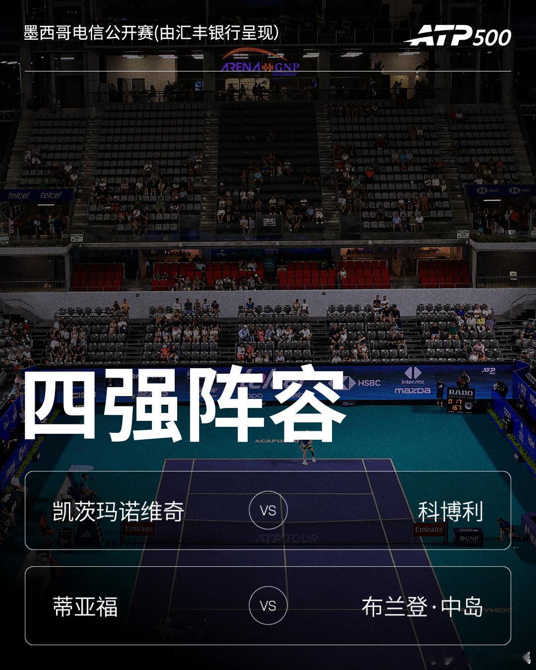 两站ATP500 赛事决出四强阵容👇
