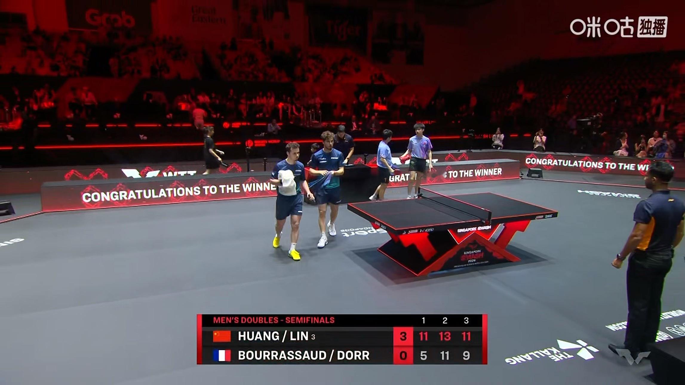 林诗栋/黄友政3比0布尔拉萨德/多尔(11-5,13-11,11-9)晋级WTT