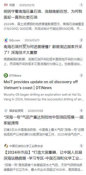 南海有这么多石油,为什么中国不开采?其实说白了,简单来说,越南已经在那里开采了,中国如果这时候插一脚,越南估计得跟中国闹翻。很多人听到这个解释觉得差不多就是这么回事,但事情远没这么简单,真正让中国目前大规模不动手的原因,排在最前面的其实不是越南闹不闹,而是另外几道更硬的坎。 第一道坎是钱包受不了。 麻烦看官老爷们右上角点击一下“关注”,方便您进行讨论和分享,感谢您的支持! 南海有这么多石油,为什么中国不开采?其实说白了,简单来说,越南已经在那里开采了,中国如果这时候插一脚,越南估计得跟中国闹翻。很多人听到这个解释觉得差不多就是这么回事,但事情远没这么简单,真正让中国目前大规模不动手的原因,排在最前面的其实不是越南闹不闹,而是另外几道更硬的坎。 第一道坎是钱包受不了。根据中国自然资源部的地质调查数据,南海石油地质总储量虽然高达550亿吨,占到了全国海上石油总量的83%,但开采这些石油的成本高得吓人。因为咱们主张管辖的优质油田,绝大多数都藏在超过1000米甚至1500米的深海区。在那种地方打井,每桶油的开采成本大概在60到80美元之间,这比直接从沙特、俄罗斯这些地方买进口油还要贵。做生意讲究划算,眼下花大价钱挖自家地里的,还不如直接去国际市场上买现成的,这是最朴素的道理 。 第二道坎是技术确实难啃。越南那些周边国家之所以能在南海采油,是因为他们靠近海岸线,在风浪较小的浅水区作业,而且背后大多有美孚、壳牌这些西方石油巨头的技术支持。反观咱们的“责任田”,比如已经投产的“深海一号”气田,光水深就达到1500米,地层温度高达138摄氏度,压力更是家用高压锅的1000倍。在这种环境下作业,好比在太空中拧螺丝。虽然咱们在2025年取得了大突破,“深海一号”全年油气产量超过了450万吨油当量,达到了陆地中型油田的规模,但部分核心设备比如水下生产系统,依然还得依赖进口,技术上还没到完全随心所欲的地步 。 第三道坎是环保这根高压线碰不得。2010年美国墨西哥湾发生的那场漏油事故,至今想起来都让人后怕,原油连续泄漏了87天,对那片海域的生态打击几乎是毁灭性的 。南海是全球海洋生物多样性的宝库,也是咱们渔民世代捕鱼的饭碗,更是周边国家共同的蓝色家园。在这片敏感水域搞开发,万一出了岔子,那就不光是赔钱的事儿了,而是可能引发跨国生态灾难。所以中国现在更倾向于稳扎稳打,甚至主动拉着印尼、文莱这些国家搞共同勘探,其实就是想先摸清家底,把环保措施做到位,不给那些想搅局的域外势力留话柄。 第四道坎是国家在下一盘大棋。其实中国并不是一口不动,而是有选择地动,比如在珠江口盆地这些争议较小的近海,咱们一直在开采。但对于南海深处那些优质油田,国家现在的策略更像是把它们当成“压箱底”的战略储备。反正油藏在地下又跑不了,与其现在急吼吼地挖,不如趁国际油价便宜多买点存着。根据2024年的政府工作报告,中国正在加快构建大国储备体系,包括扩建国家石油储备基地 。等技术哪天成熟了,成本降下来了,或者国际上的油真不够用了,咱们随时有能力把这些宝藏拿出来。更何况,随着咱们在南海的岛礁建设逐步完善,机场、雷达、海警船常态化巡逻,那一带的海域实际上已经被牢牢看住了,主动权始终握在咱们自己手里,这才是最大的底气 。