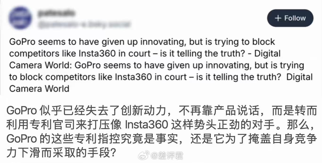 其实 GoPro 仅针对影石一家公司发起这么多指控,明眼人都能看出来已经超出常规维权范畴了,就是想拿专利搞饱和式攻击,打压势头正劲的同行,来挽回一点市场份额。听说影石光是应诉都烧了超 1000 万美元,刚到底了属于是。。。