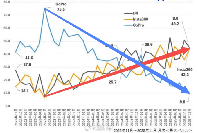 感觉做产品的公司,还是得好好研究核心技术,GoPro 现在真没啥新东西,去年公司市值就蒸发了 98%,日本市场份额甚至跌破 10%,剩下基本都是大疆和影石的