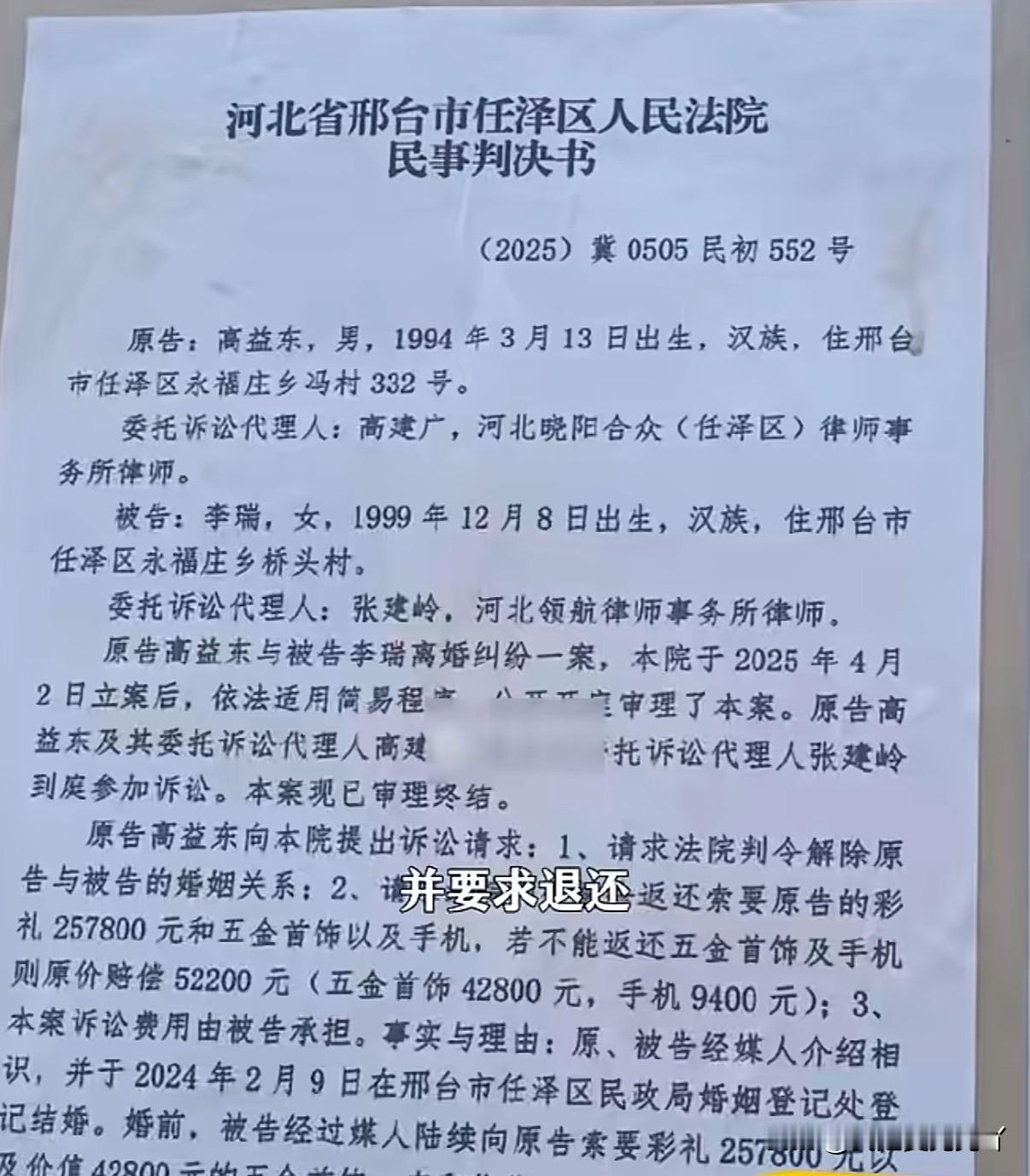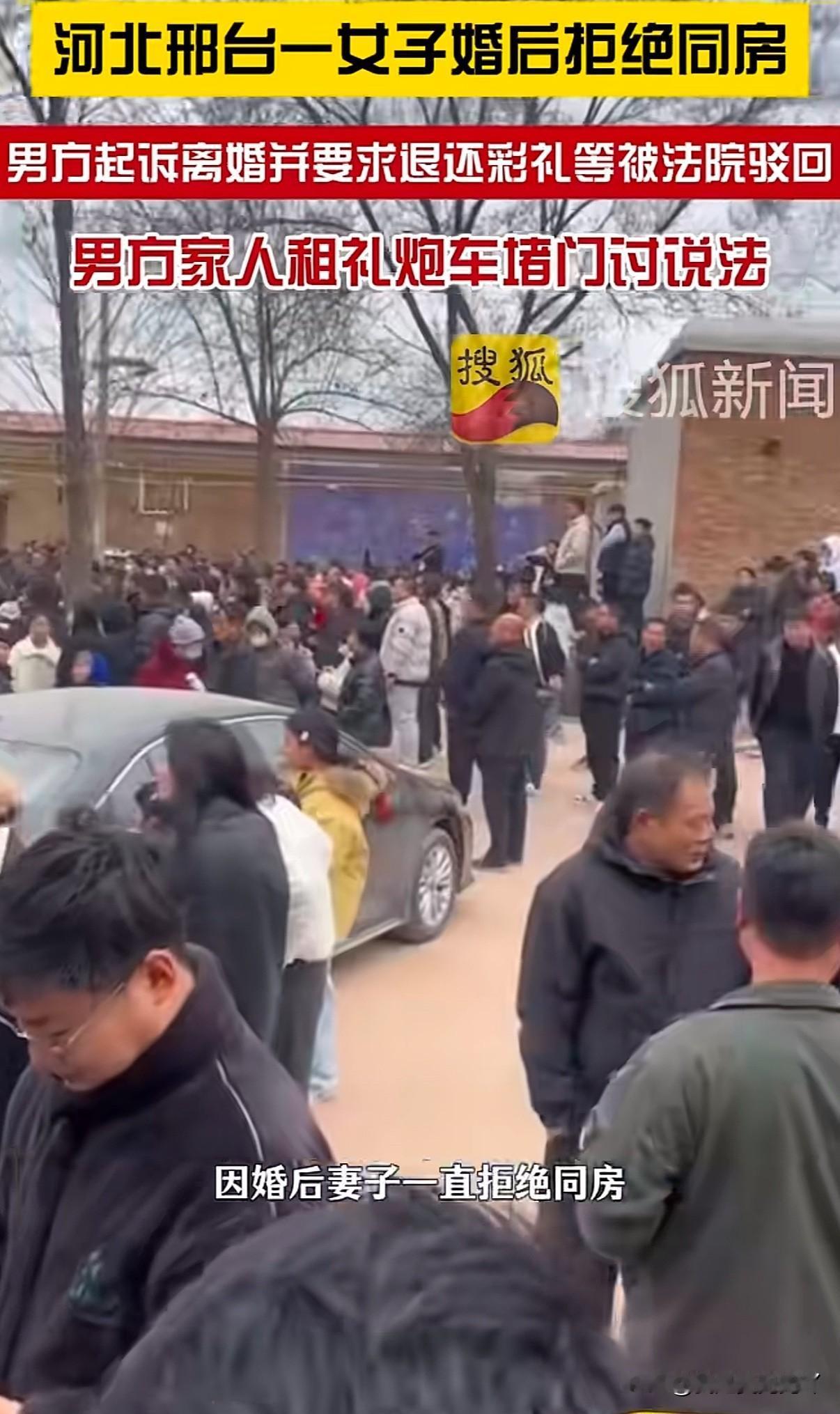 女子收30万高价彩礼却始终不肯同房,男方起诉要求退还彩礼并离婚,女子却说有感情不离婚。男方无奈租礼炮车堵门要说法 高某某与李某两人在2024年2月9号经媒人介绍领证,高某某向李某支付了257800的彩礼,还有五金4.2万余元外加一部价值9400元的苹果手机。两人领证后李某总以各种理由拒绝与高某某同房 25年高某某向法院提出离婚诉讼要求李某返还25万余元的彩礼、五金等,李某却说两人感情并未破裂不同意离婚,法院以证据不够充分为由驳回高某某离婚诉讼 败诉后高某某家人开礼炮车带着人就将李某家门堵了,并向街坊四邻诉说其中缘由引起大量群众围观,目前当地相关部门已介入调查 不愿意同房也不愿意离婚这是打算拖几年然后就不用退彩礼了?这样欺负人真不怕被男方报复?