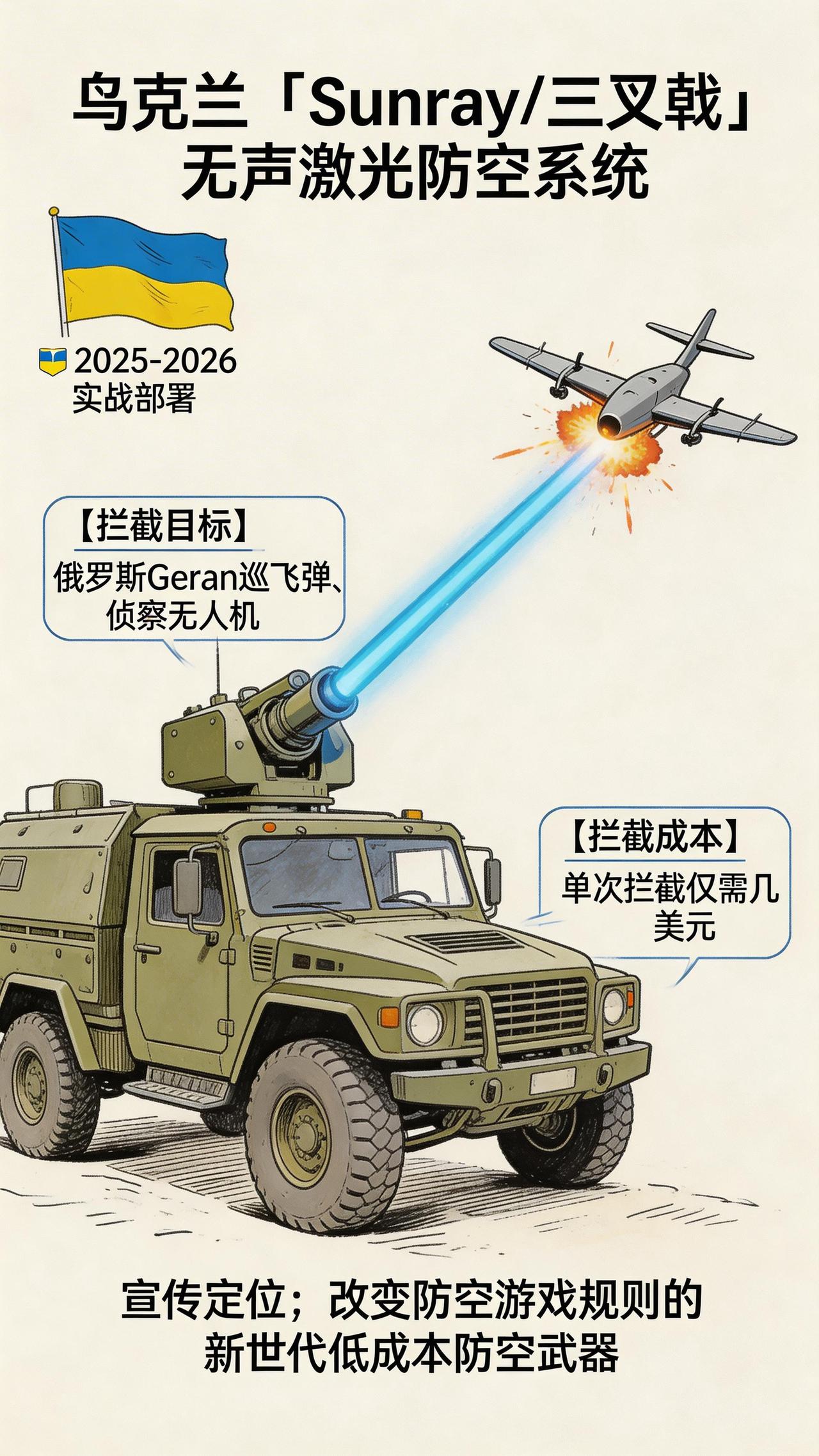四年俄乌冲突中出现的部分新式武器:   【俄罗斯 Lancet(柳叶刀)】 “柳叶刀”从2022年起大规模使用,2023–2024年升级版集成机器学习(ML)识别目标,抗干扰能力强。 专门猎杀坦克、火炮、雷达车,性价比极高,成为俄军“绞肉机”推进的核心支撑   【乌克兰 FPV自杀穿越机】 2023年起普及,成本几百到几千美元、携带RPG弹头或手榴弹,直接撞击坦克薄弱部位(如引擎盖、履带)。 2024–2025年引入光纤控制FPV,彻底免疫电子战干扰,成为乌军反装甲主力。无数视频显示一架FPV干掉价值数百万美元的T-90。   【乌克兰“Sunray / Trident”无声激光系统】 2025–2026年实战部署,低成本激光器专门拦截俄Geran无人机和侦察无人机,每击落成本仅几美元。被宣传为“改变防空游戏规则”的新世代武器。   【俄罗斯 Oreshnik(榛树)新型中程弹道导弹】 2024年11月21日这一天,俄罗斯对乌克兰中部城市第聂伯罗的南方机械制造厂等国防工业设施发动打击,使用了该导弹。 速度据称超过10马赫,标志着中程导弹在常规冲突中的首次实战应用。