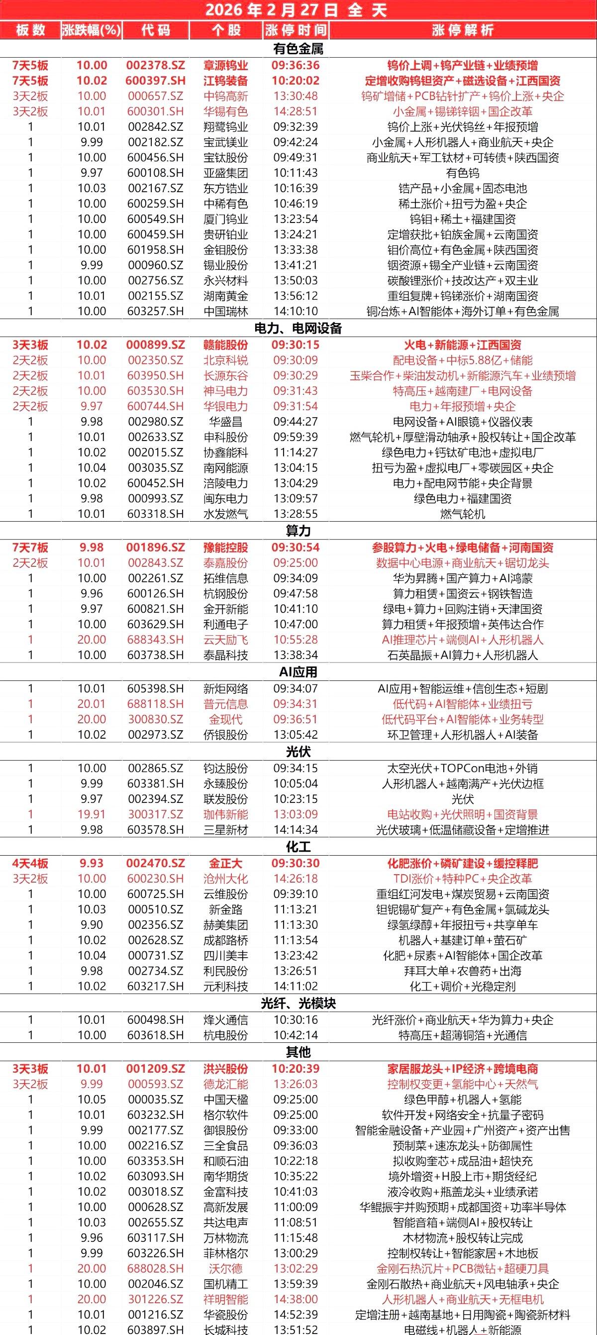 2月27日, 全天封板复盘。