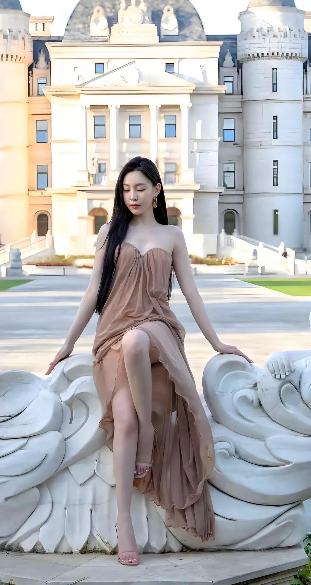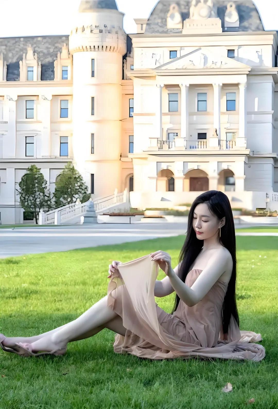 绿草如茵映美人儿,古风长裙舞翩翩。