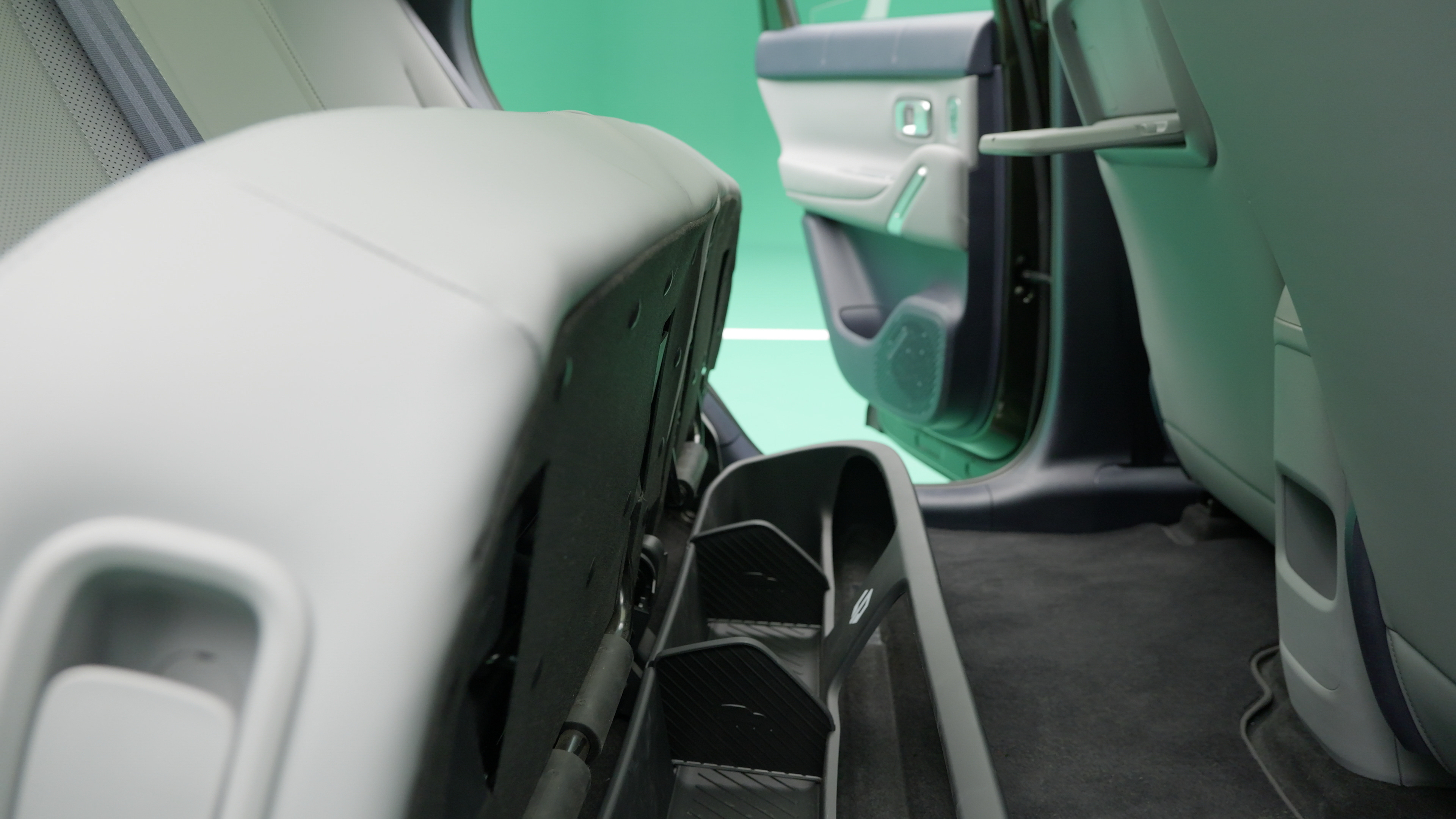 关键是还很能装。得房率达到88.1%。后排居然有小桌板,带杯架和挂钩,太方便了。后排坐垫能整个翻起来,下面又是储物空间,养宠物也很好用。后备厢底下有个106L的下沉式储物舱,带排水口,能直接用水冲,这波又是钓鱼佬狂喜