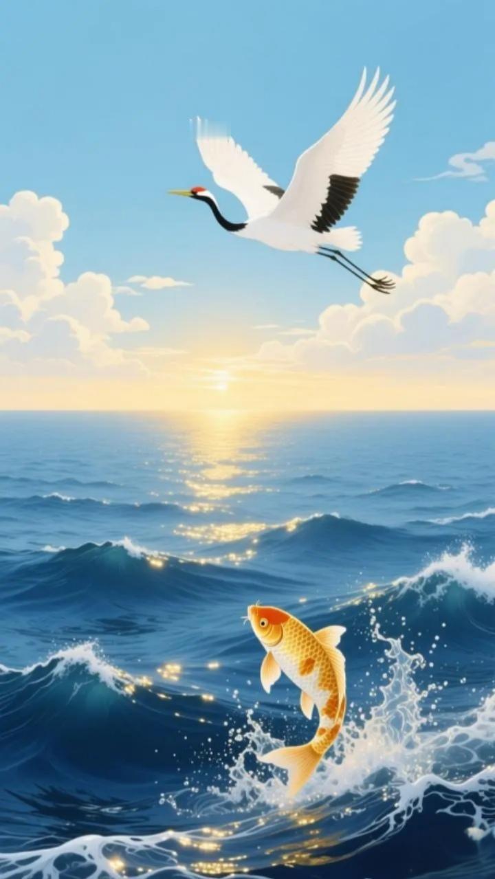 上联:海阔凭鱼跃, 下联:天高任鸟飞。