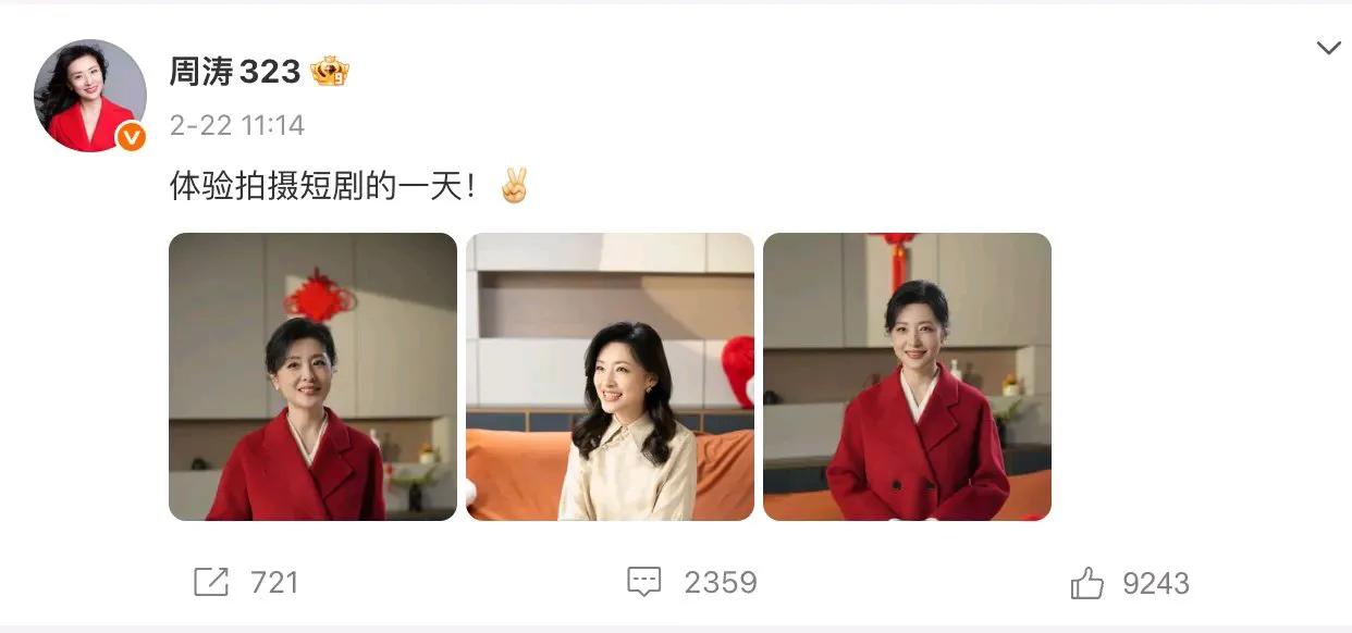 周涛为什么会去拍短剧? 肯定不是因为缺钱, 更不是没有别的工作可做,用她自己的话说,拍短剧好玩儿,轻松,就是想尝试新东西! 谁能想到当初端庄大气的央视一姐,主持过17届春晚,临到57岁了居然一头扎进了短剧圈呢? 作为家喻户晓的 “国民主持”,周涛 1968 年生于安徽淮南,拥有播音指导正高职称,履历堪称亮眼。她曾连续 16 年主持央视春晚,坐镇两百余台国家级重要节目,还担任过央视文艺中心副主任等职,拿遍五四奖章、十佳主持人等重磅荣誉。2016 年告别央视后,她先后出任北京演艺集团首席演出官、保利文化集团艺术总监,始终活跃在文化一线。从春晚舞台到短剧片场,周涛从容跨界、不设限,气质依旧出众。 跨界拍短剧可锻炼主持人不同方面的表演能力,必须点赞。 主持人当久了,承受不了被大众遗忘的痛苦。 周涛勇闯短剧圈儿,人前人后,抛头露脸的肯定都是有表现欲的,正常。