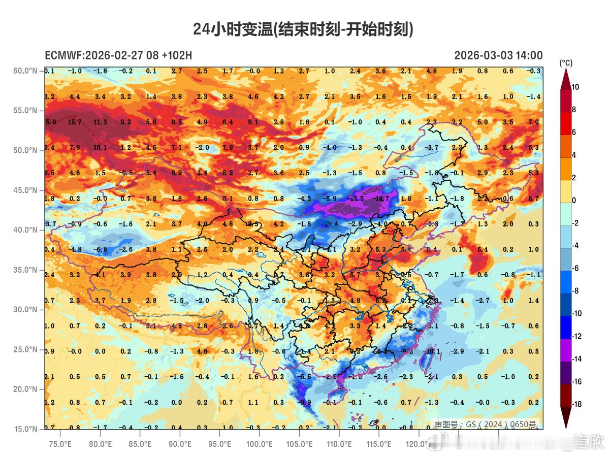 江南等地,明天升温,气温还偏高。之后也因为阴雨+冷空气影响,白天最高气温转为小幅偏低,但夜间因为云层保暖作用,最低气温依然偏高,昼夜温差很小。比如南京3月1日10-12℃,3月2日9-11℃,3月1日长沙10-12℃、全天温差只有2℃。