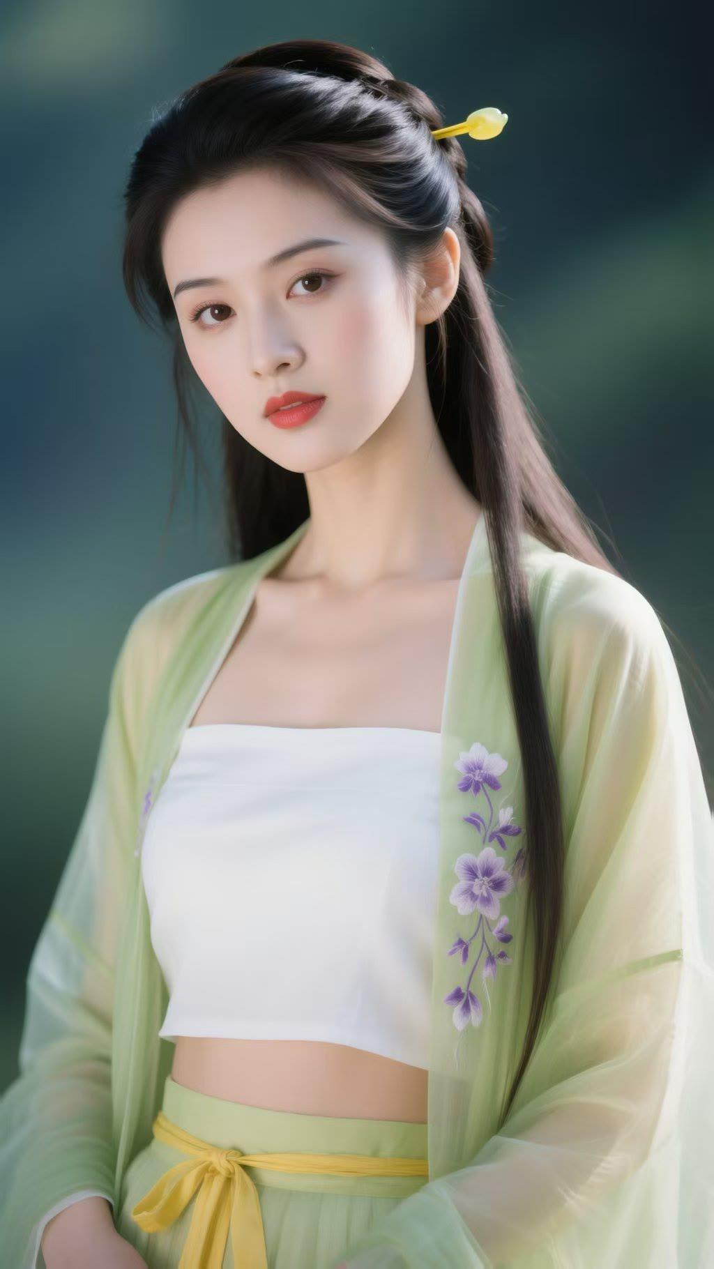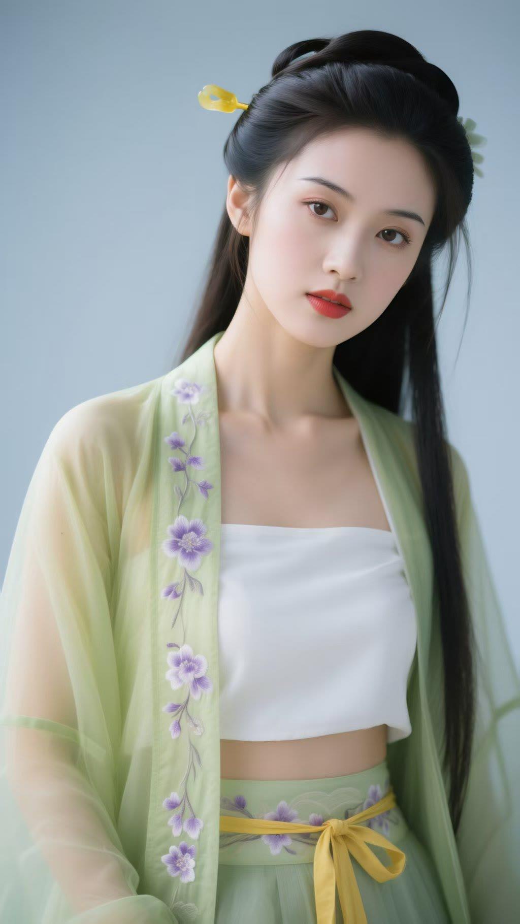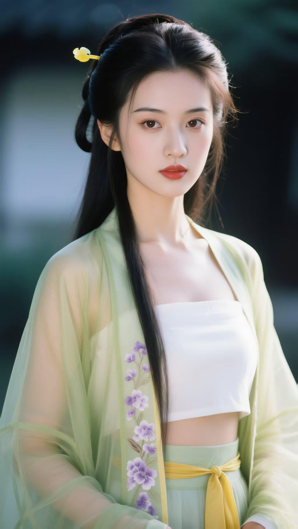 清新古风少女,一缕发丝轻扬,古韵悠然。