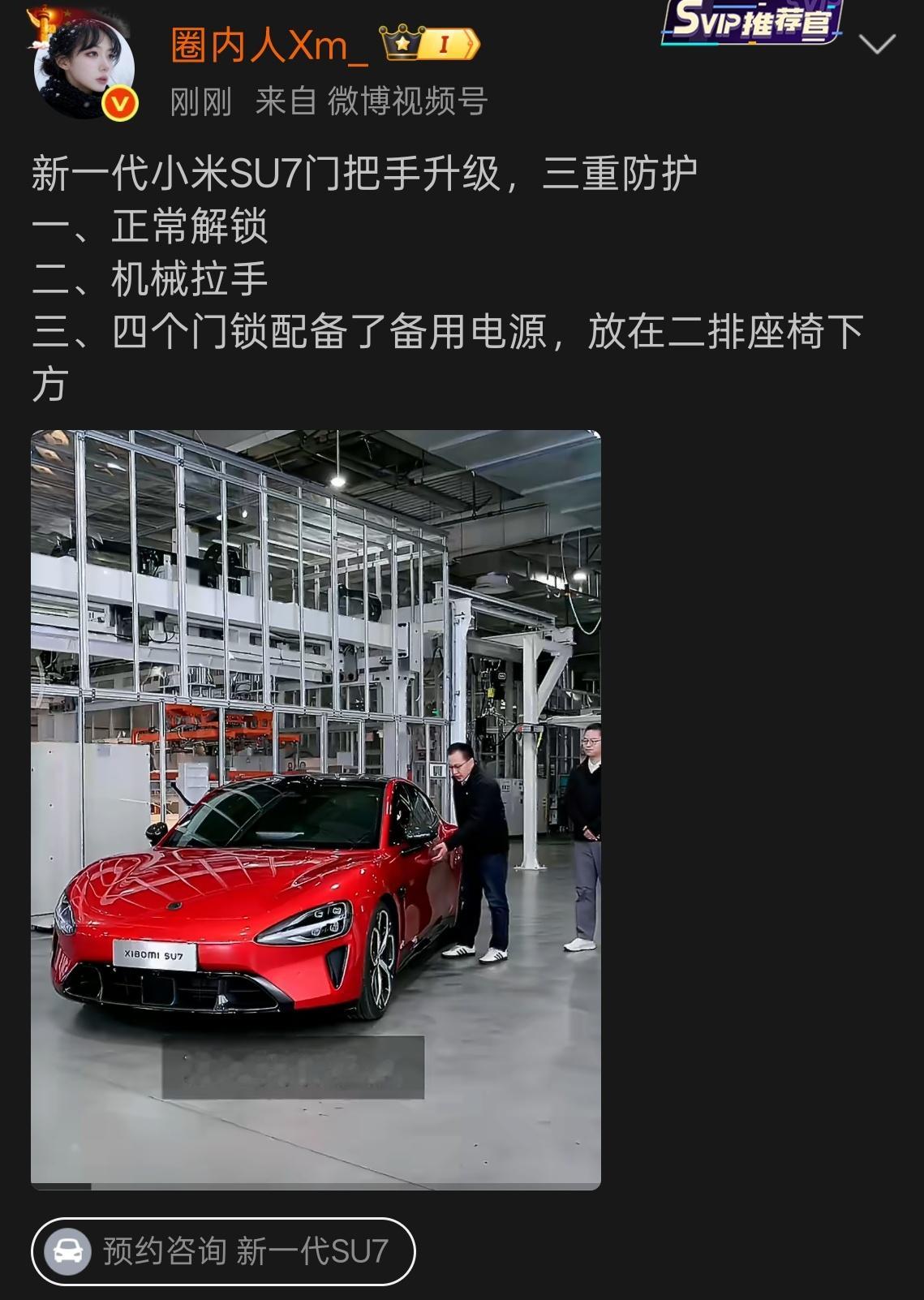 猜的没错,新SU7除了增加了机械拉手。还增加了备用小电瓶,形成四门交叉电源双保险
