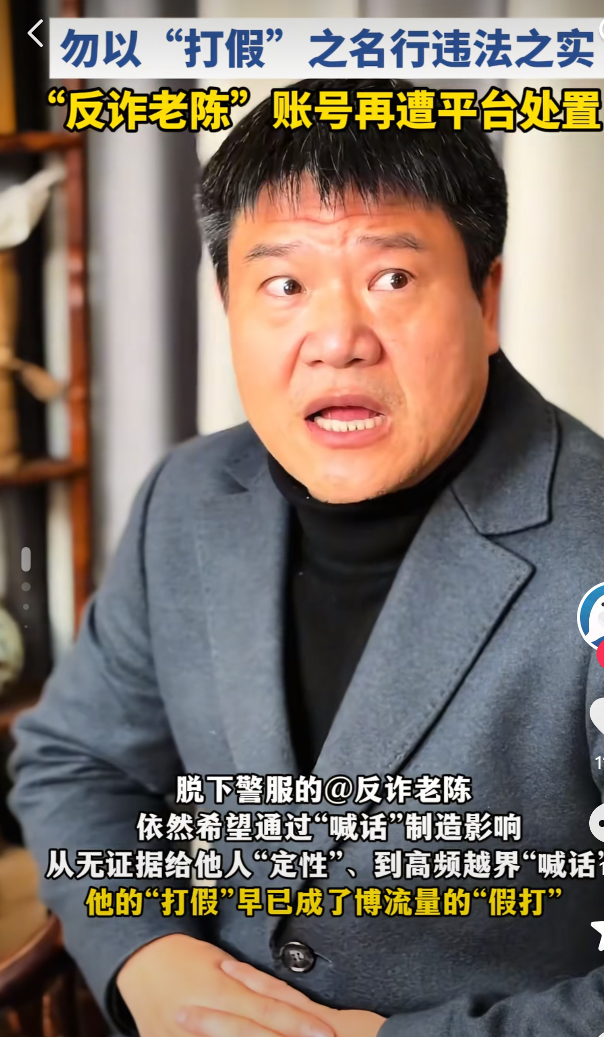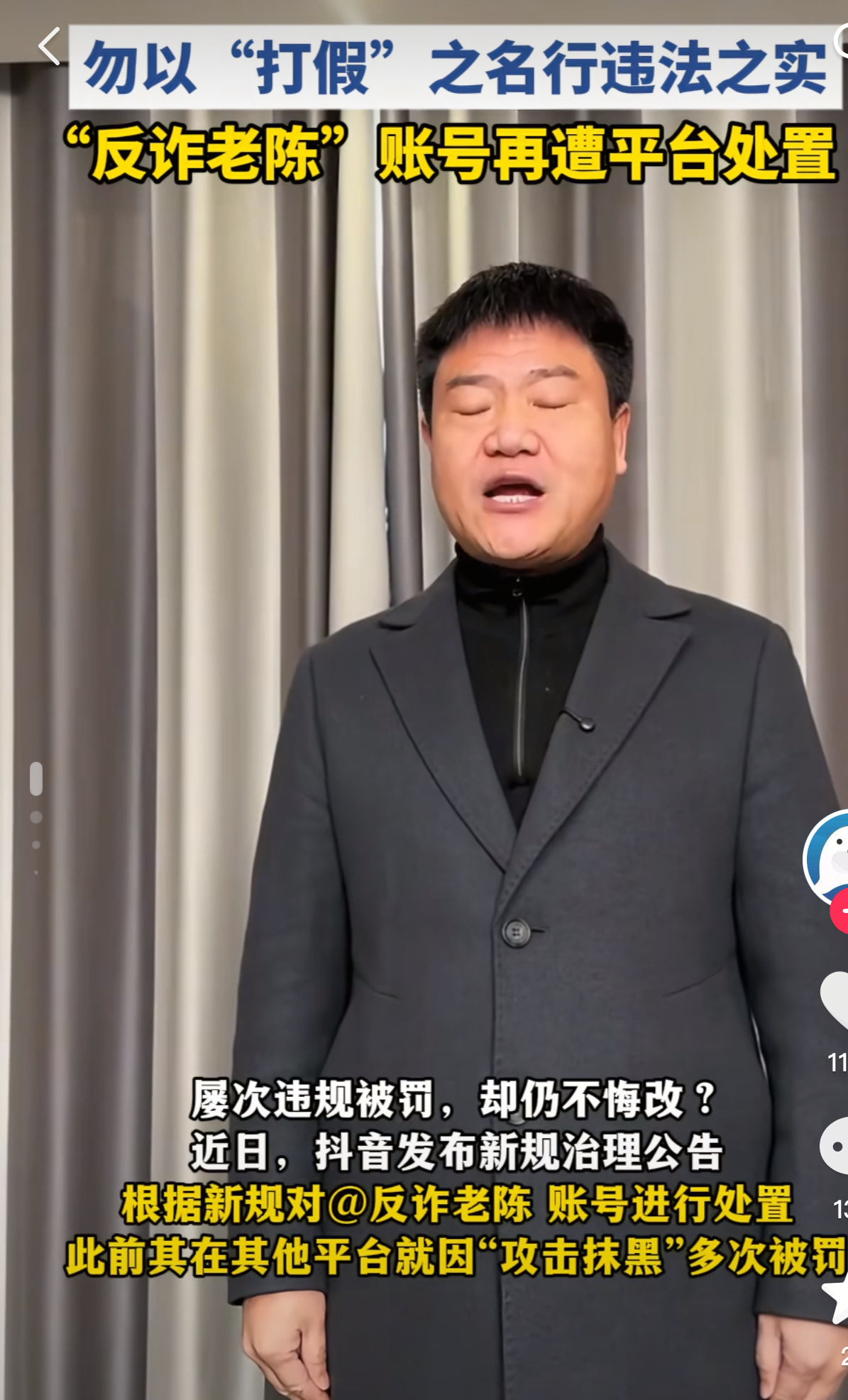 反诈老陈再一次因为违规被平台处置……