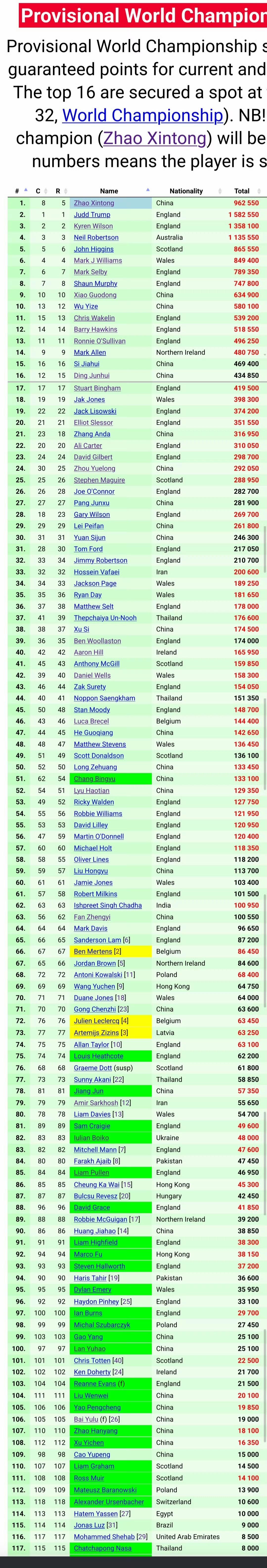 千算万算没算到这两个追兵同时打进了威尔士赛八强,而且还对位,肯定有一人进四强。 如果丁俊晖要保住种子席位,今明两天需要(希金斯or周跃龙)仗义出手:小司机先斩二师兄后负半决赛。