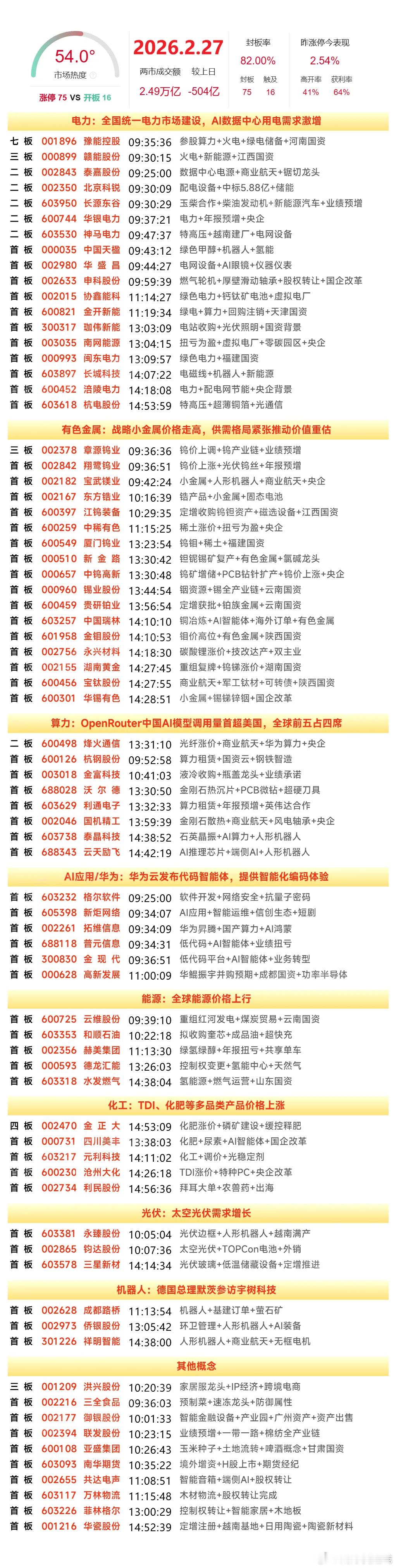 2月27日涨停榜