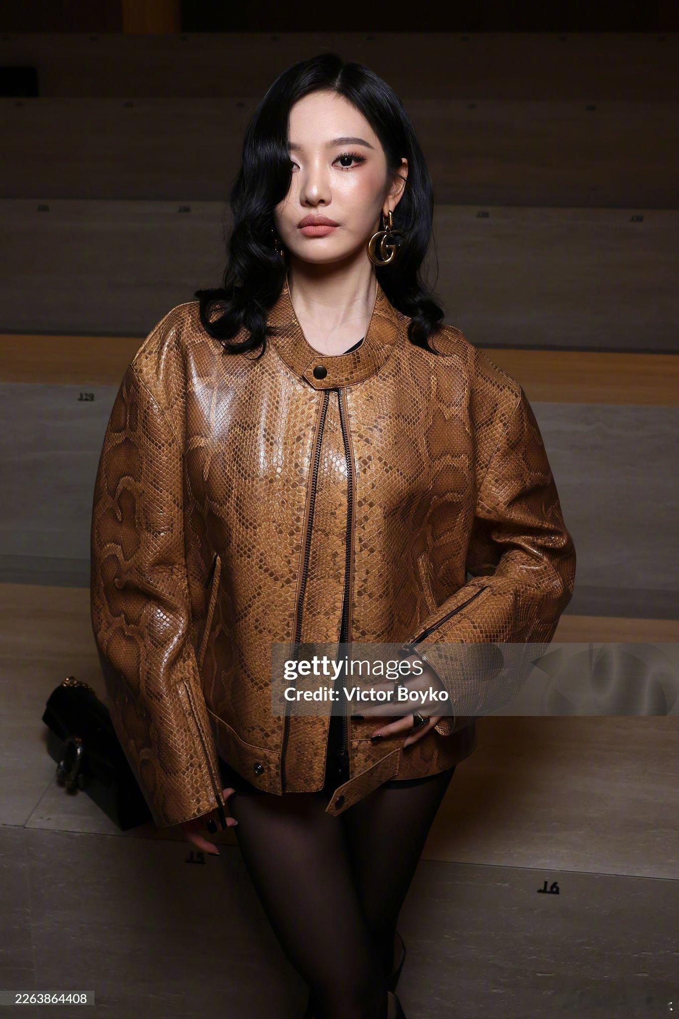 宁艺卓G社看秀生图 宁艺卓米兰时装周G社看秀生图来了!精致贵气的侧分卷发搭配蛇纹皮衣完全女王级别✨ 宁艺卓美趋第一