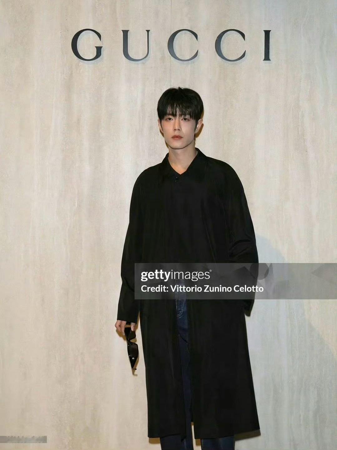 肖战、宁艺卓亮相GUCCI米兰大秀,两位门面。肖战 这很齐夏宁艺卓蛇纹皮衣