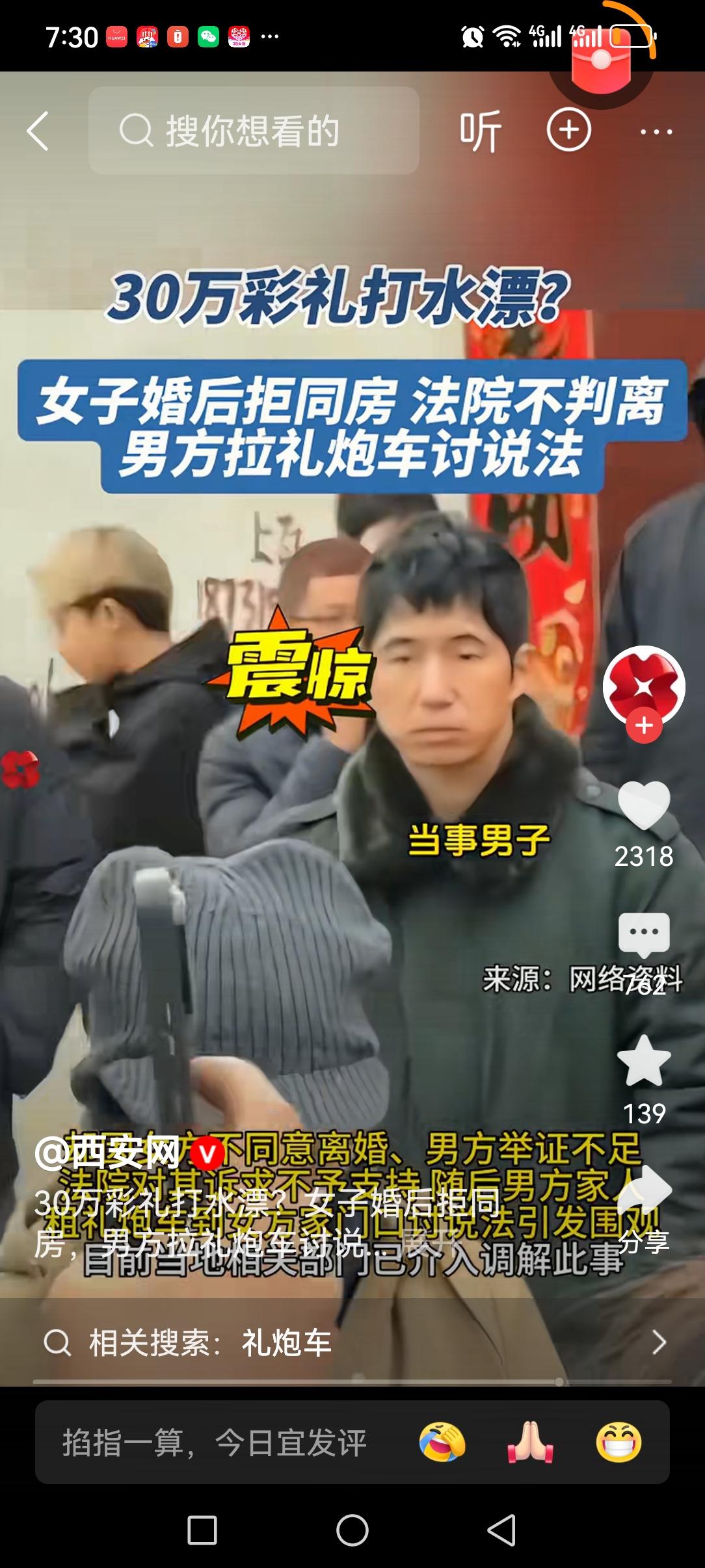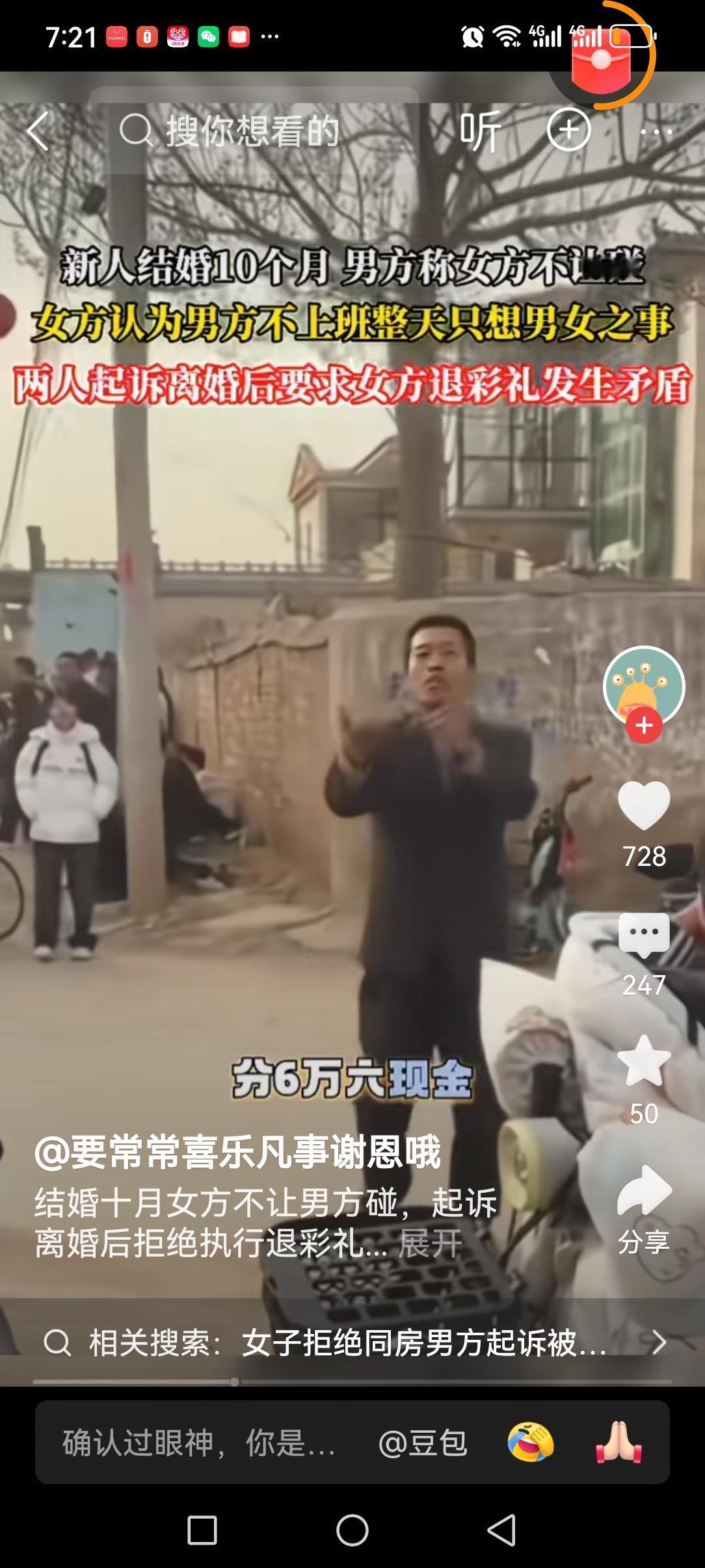 退伍军人爱上二婚黄花大闺女的我! 被邢台男子的堂姐这番喊话给逗笑了! 这个身着白色羽绒服,站在墙头,车上对着围观人群大声吆喝的女子,是来为自己的堂弟伸张正义的。 原来他堂弟结婚一年,和新娘都没有同过房,两人一直分居状态。 男方因为娶女方花了25万的彩礼,还有5,6万的聘礼,连媒人的钱,加在一起有三十多万。毫不夸张的说,掏空了男方的家底。女方在男方家也是饭来张口,衣来伸手,对她是百依百顺。 但她睡时不脱衣,一直拒绝男方靠近。男方无奈只能起诉离婚,要求退还彩礼。 但女方坚持说双方有感情,拒绝离婚,不愿退还彩礼。 这才有了男方家人去女方家讨要说法,当众吆喝的视频。 大家觉得男方这家做过分吗?