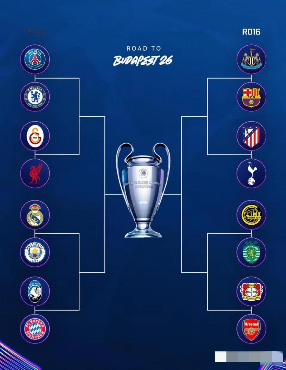 今年的欧冠不论谁夺得冠军,可能都是历史上含金量最高的一届,强队太多了……! 首先,英超就有6支豪门球队进入了16强,切尔西,利物浦,曼城,纽卡斯尔,热刺,阿森纳,这其中任何一支球队夺冠我们都不应该感到惊奇,英超联赛确实是世界第一联赛,名不虚传……! 再看上半区,每一支球队推进一步都会非常困难,每一场比赛都堪称欧冠决赛级别,就拿大巴黎来说,即便赢了切尔西,后面还有利物浦,哪怕赢了利物浦,后面还有皇马,曼城,拜仁这样的顶级强队,困难程度简直五颗星,哪怕杀入决赛,下半区还有巴萨,阿森纳,马竞这样的强队,今年的欧冠对阵简直就是地狱级别! 再看下半区,相比上半区,下半区明显的强弱分明,阿森纳和巴萨大概率在半决赛相遇,感觉巴萨更抗揍,更耐打,阿森纳止步半决赛已经算超额完成任务! 今年的欧冠决赛大概率是皇马/拜仁vs巴萨,冠军就在上半区……!欧冠 欧冠联赛
