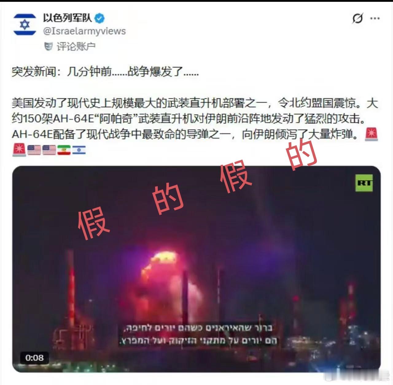 这张美伊几分钟前开打的推特截图,是假消息。起码这时候还是假消息,推特的AI自己都说这是假的。美伊对峙美军向特朗普汇报对伊朗军事选项