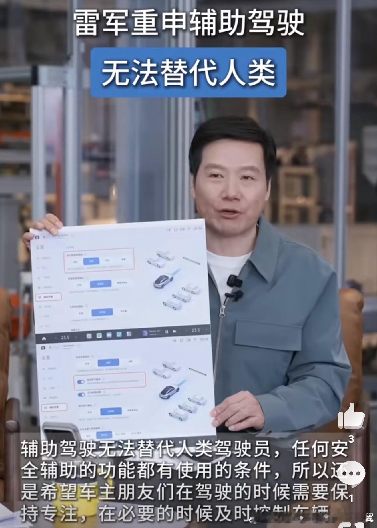 雷军再强调辅助驾驶无法代替人类