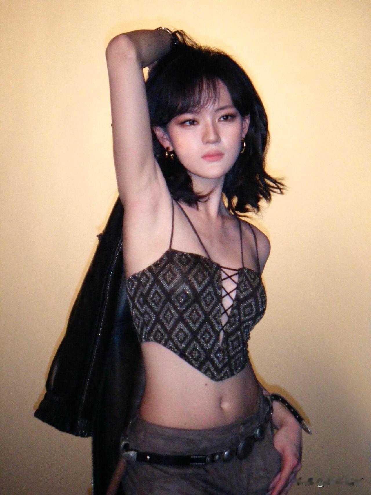 刘亦菲这条裤子挺养生,毕竟降温了肚脐眼必须护住啊