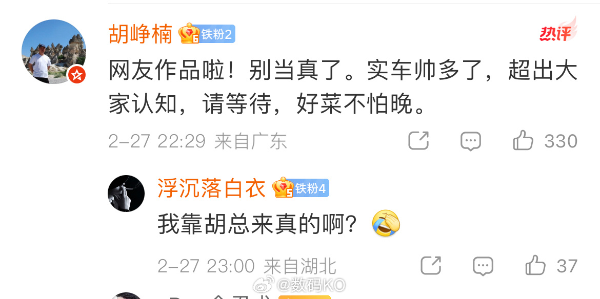 小米概念跑车,颜值这块一点也不用担心小米,虽然是网友的图,实车肯定会更加漂亮,从小米历来的海报就能看出,永远没有实车好看。加上胡总的认证:实车更加帅气,超出大家认知,这个大家可以更加期待下。相对于颜值这一块,其实更加让人期待的是小米概念跑车,到底有哪些黑科技,毕竟现在小米su7Ultra都这么顶了,这个概念车就更加让人期待了,炫起来就完了。