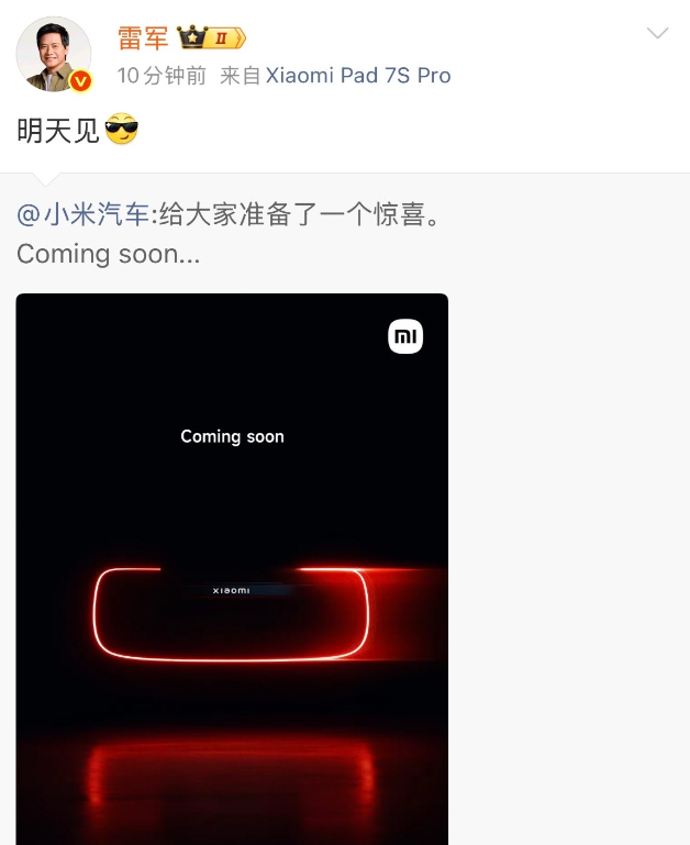 所以大概率,是小米会出现一个新的产品,而且这个产品有可能是一辆新车,不知道这到底是一个概念车还是他们今后要卖的量产车。