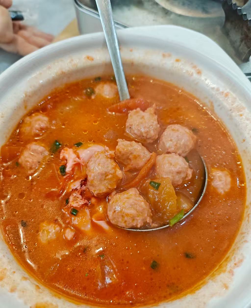 4️⃣.西红柿肉丸汤,肉丸吃起来Q弹,有嚼劲,细腻,酸酸的清香味。