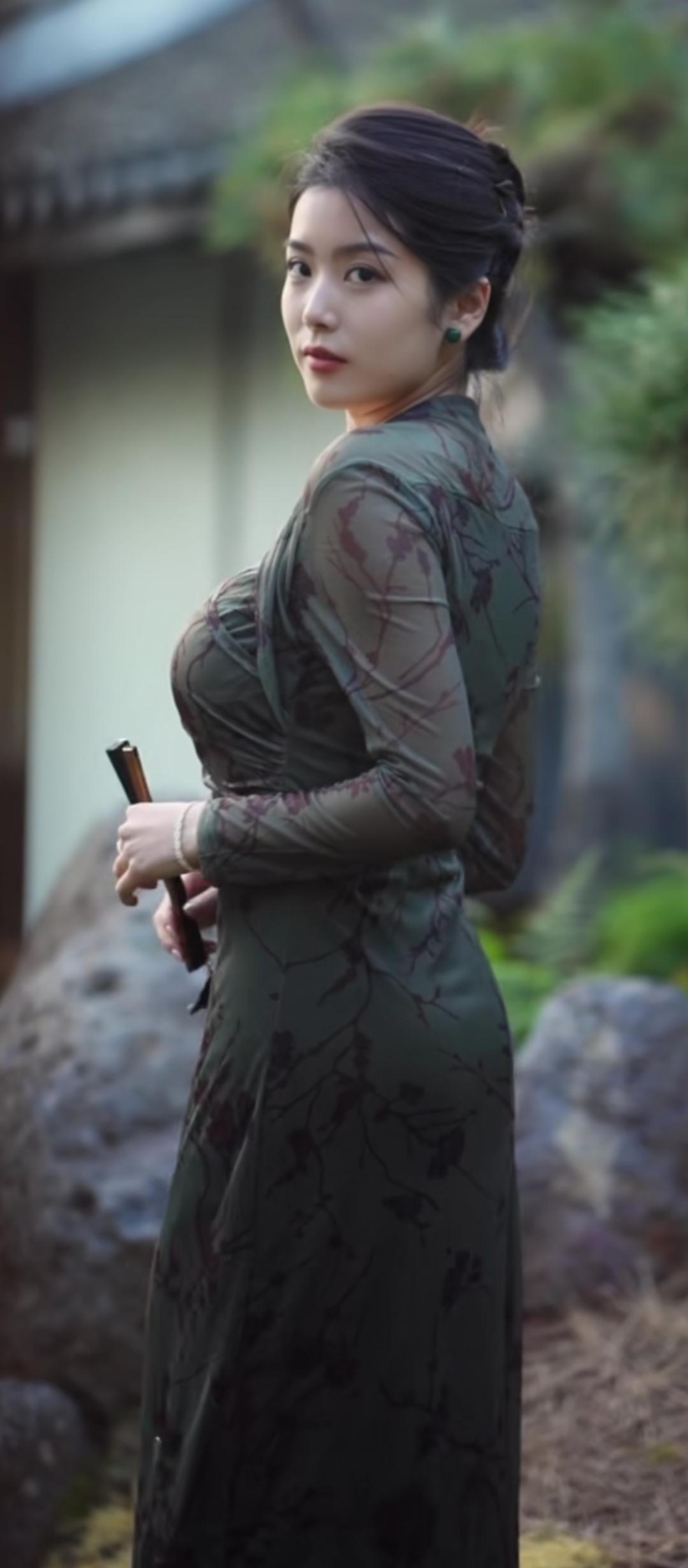 优雅旗袍,古韵风情,漫步园林间