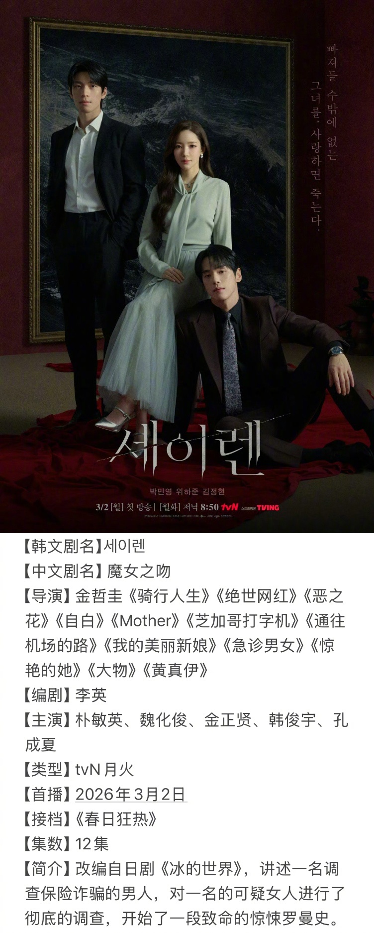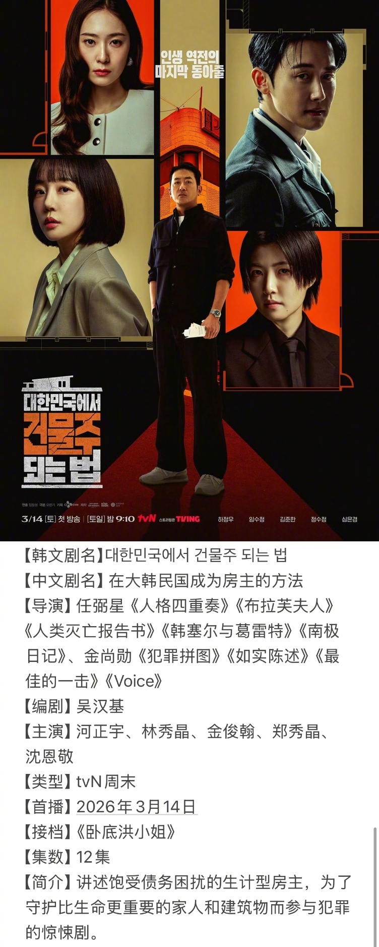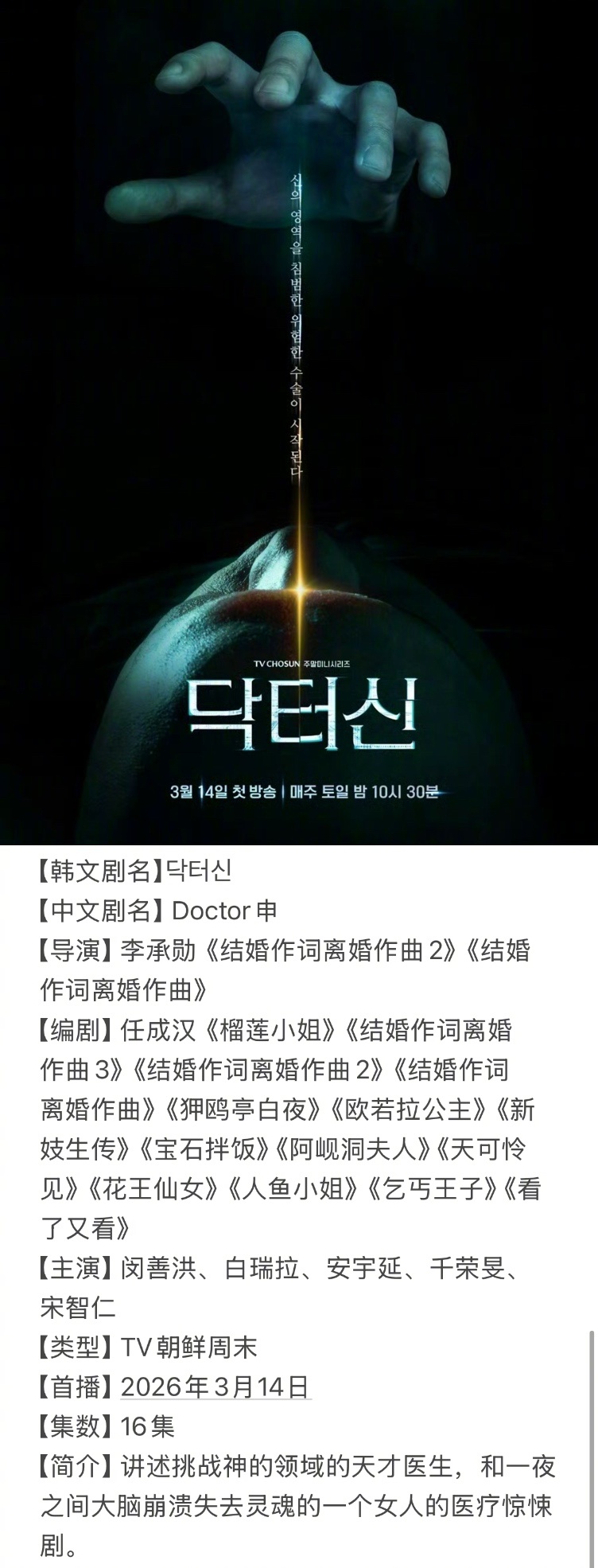 =====三月韩剧抢先知=====3/2 tvN月火《魔女之吻》3/6 JTBC金曜《依然闪亮》3/6 Netflix《订阅男友》3/13 SBS金土《神与律师事务所》3/14 tvN周末《在大韩民国成为房主的方法》3/14 TV朝鲜周末《Doctor申》3/16 ENA月火《Climax》3/26 KBS木曜《寻牛就到连理里》3/30 KBS日日《我们愉快的好日子》=====转载注明出处=====