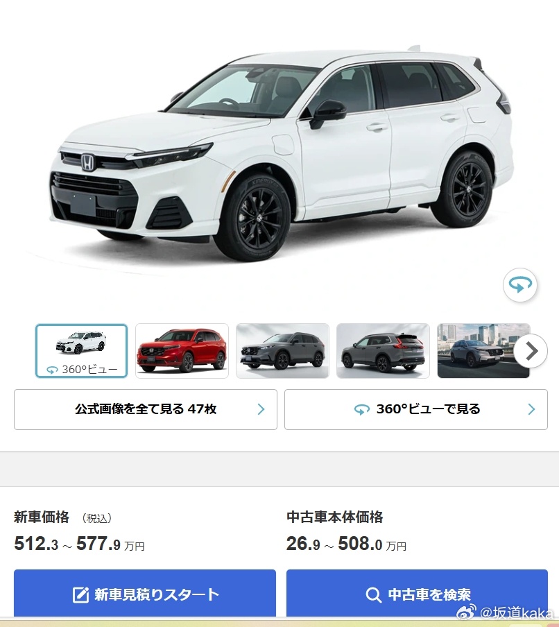紧凑型SUV一下子飙升,率先突破300万日元的第五代本田CR-V,起售价319万日元,走低销量高利润的路子。