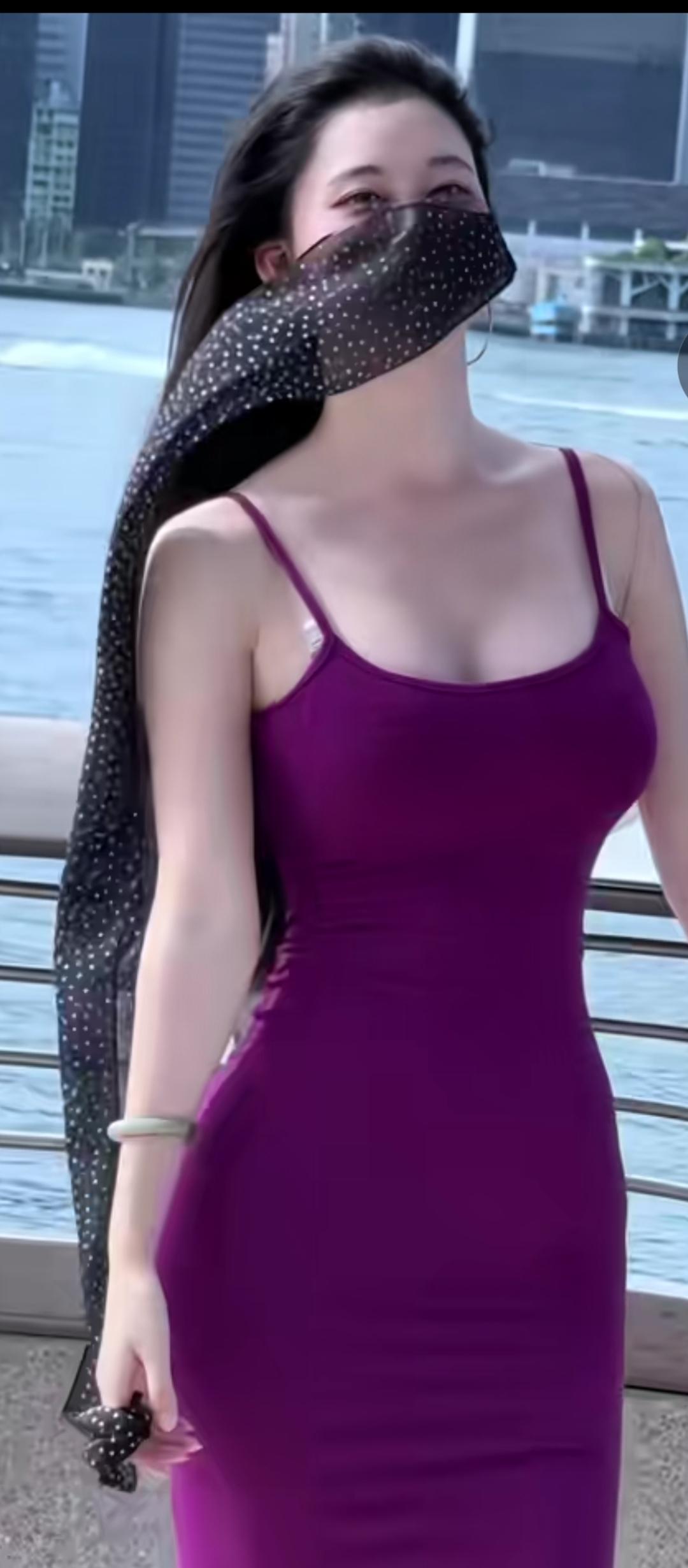 海边漫步,紫色长裙,微风拂面,心情舒畅