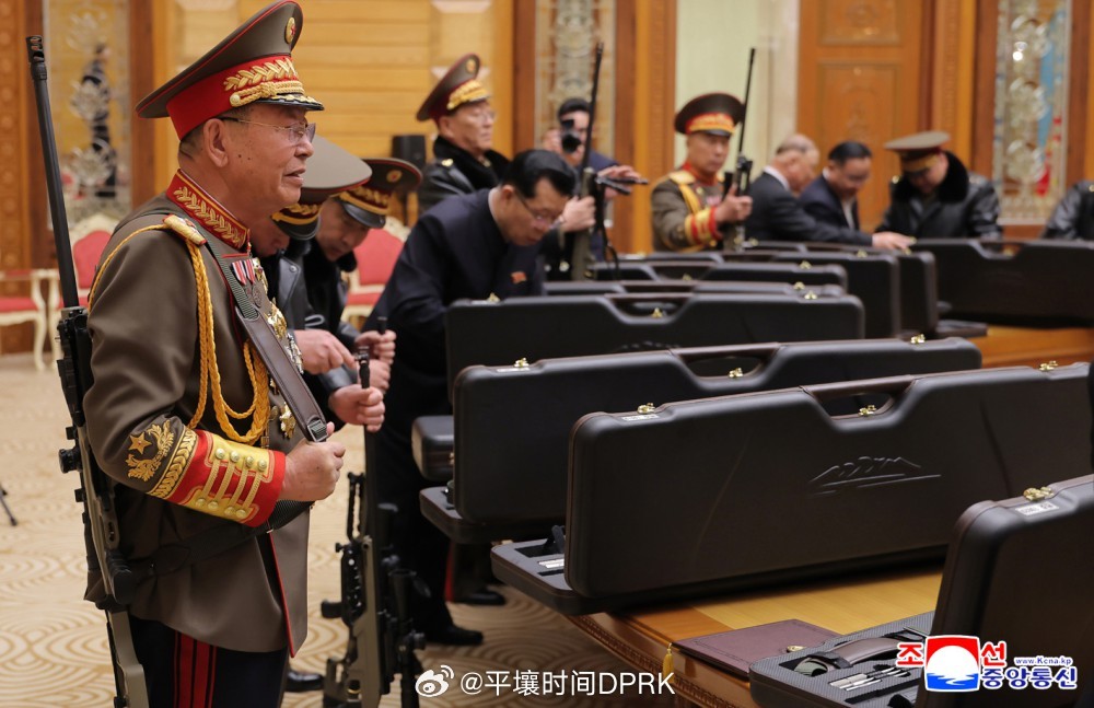 金正恩同志2月27日在党中央委员会本部会见一些主要领导干部和军事指挥员,并亲自给主要领导干部和军事指挥员赠予新型狙击步枪。